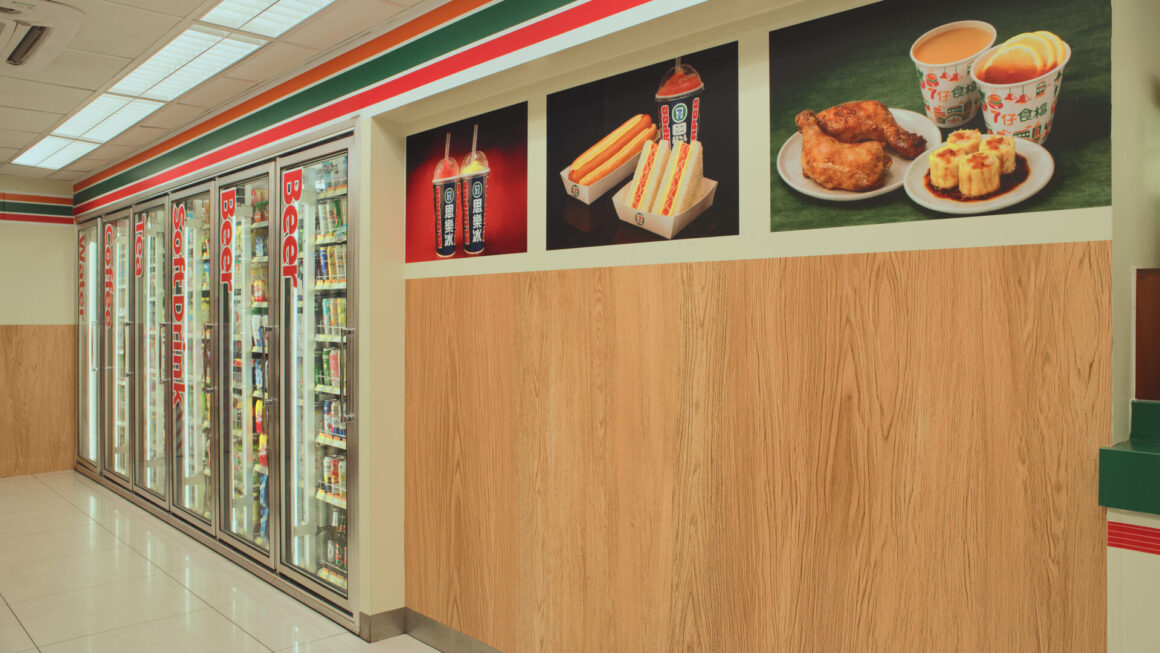 店內佈局同樣精緻還原,由「7 仔食檔」專櫃位置、思樂冰機,至每個雪櫃及角落,均還原了 80 年代的氛圍。米黃色牆身配上橙、綠、紅色調,加上當年的宣傳標語及餐牌,每個細節均精細還原昔日情懷,猶如走入時光隧道。