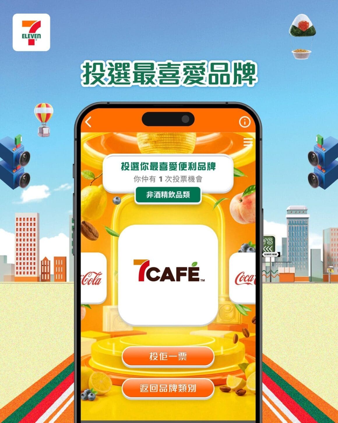 每次完成投票後,用戶可即時獲得 7-Eleven 自家品牌產品優惠券。獎賞包括免費食品或飲品,例如: