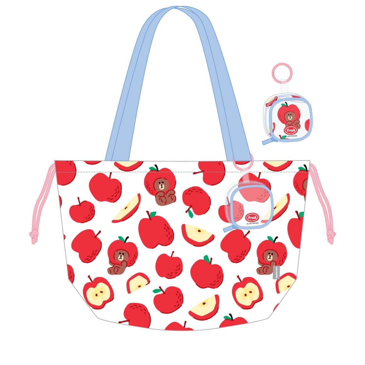 BROWN 以蘋果造型現身,設計簡約又實用。大容量購物袋適合日常使用,並可摺疊收納於 PVC 迷你包內,方便隨身攜帶,兼顧環保與實用性。