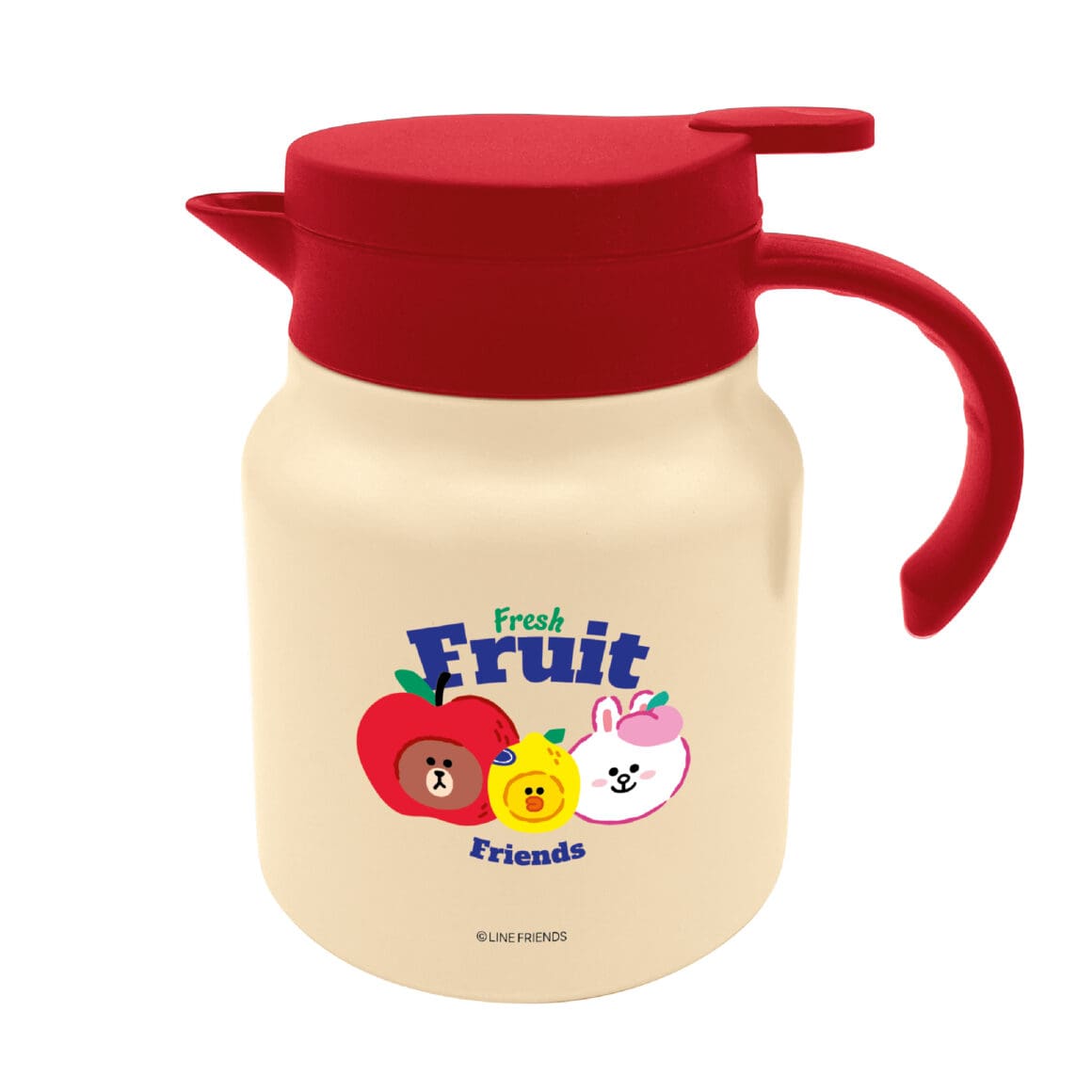保溫壺瓶身有印有 BROWN 、 CONY 和 SALLY 經典角色,配襯著可愛水果的造型,加上 1000 毫升大容量,兼具實用性與品味,輕鬆為居家生活升級。