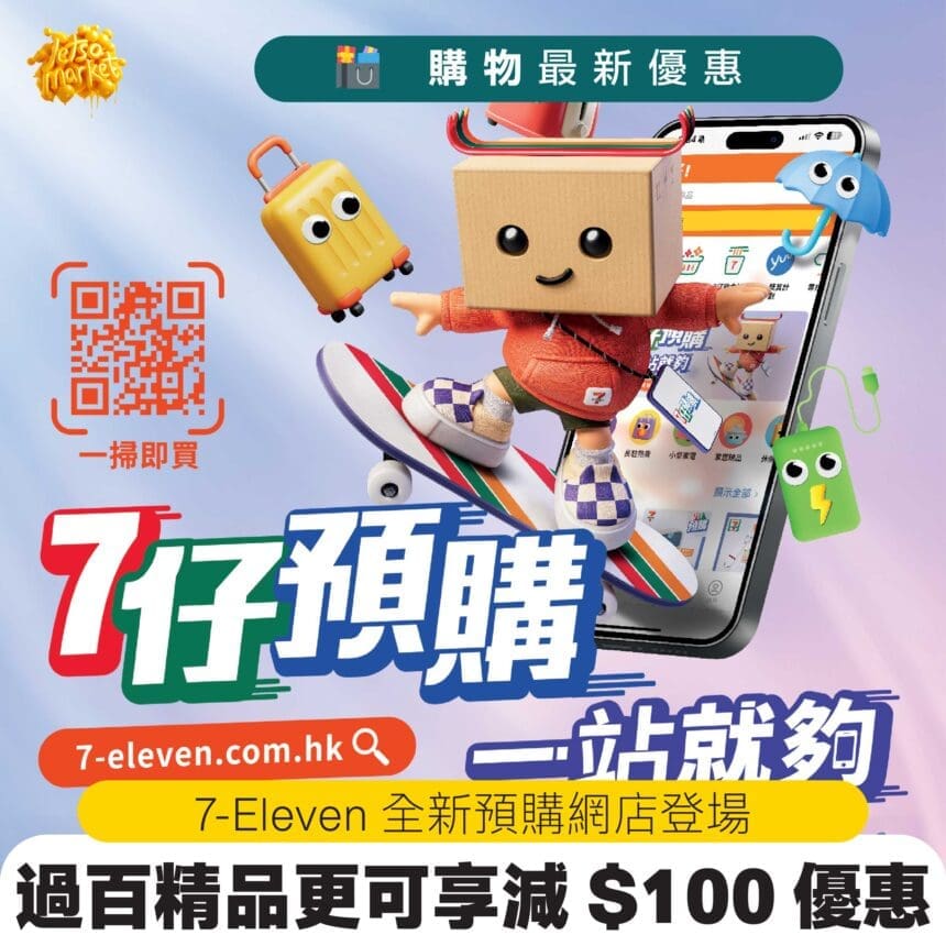 7-Eleven 推出全新「7仔預購網店」(連結),令預購體驗全面提升!顧客只需一 Click 網店下單,就可以自選任何一間香港及澳門 7 仔店舖取貨,自取點超過 1,000 多間!完成預購後,顧客會在取貨日期前收到取貨提示 SMS 短訊,只要在指定日期到店舖展示取貨二維碼,即可領取貨品,整個過程輕鬆、快捷,讓你隨時隨地都可以在線上預購各種心頭好。另外,全新網店讓顧客能隨時翻查所有訂單紀錄,對所購買過的產品一目了然!為慶祝新網店登場,即日起至 9 月 25 日推出網店限定優惠,輸入優惠碼「 7P50 」購物滿 $300 可減 $50;輸入優惠碼「 7P100 」購物滿 $500 可減 $100。