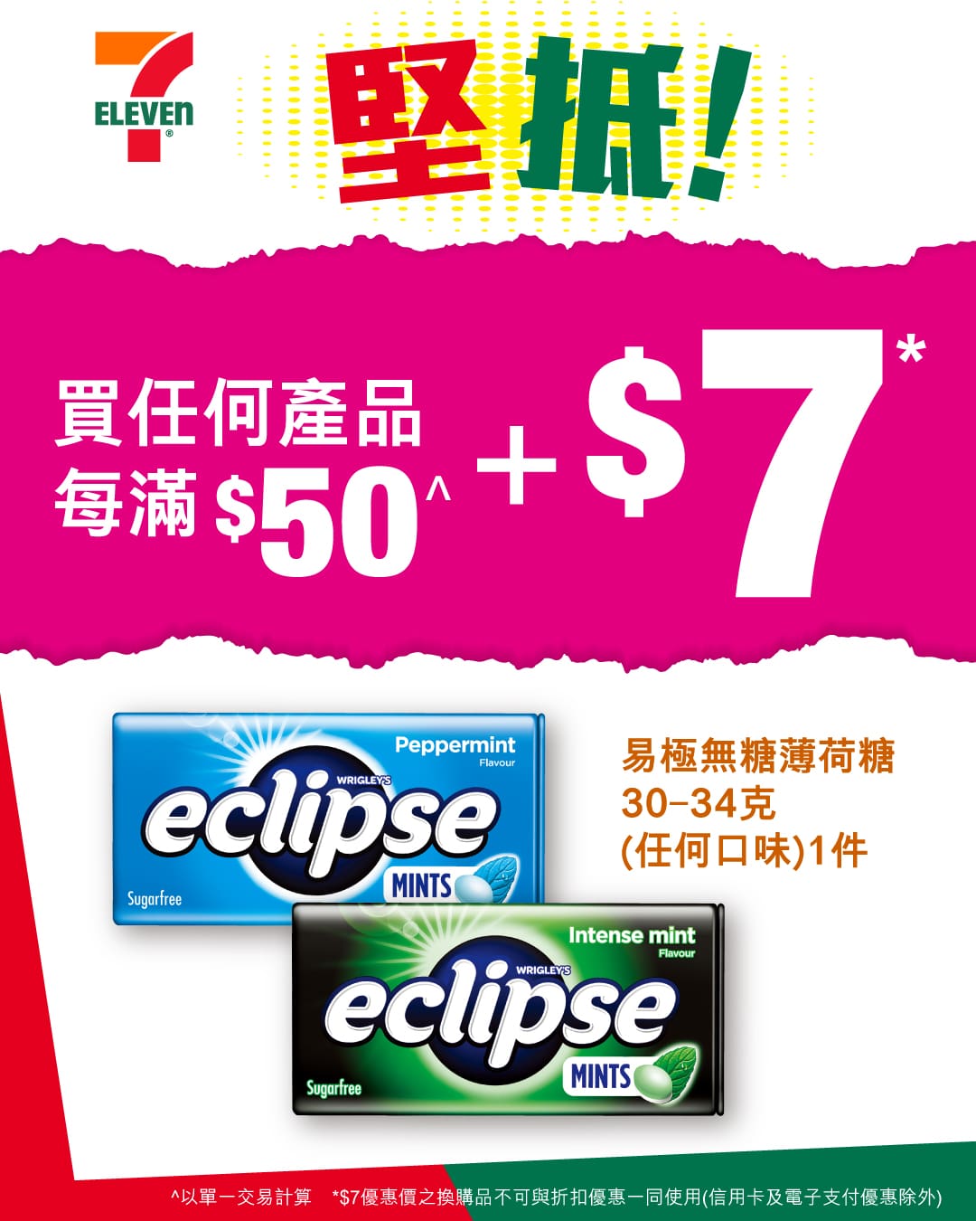 • 消費滿港幣 $50 加港幣 $7 換購易極無糖薄荷同步港幣 $10 限時價