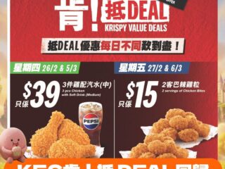 著數優惠|KFC「肯!抵 DEAL」兩星期限時回歸、$50 六件雞+ $22 兩客大飯輪流登場…(至 3/11)