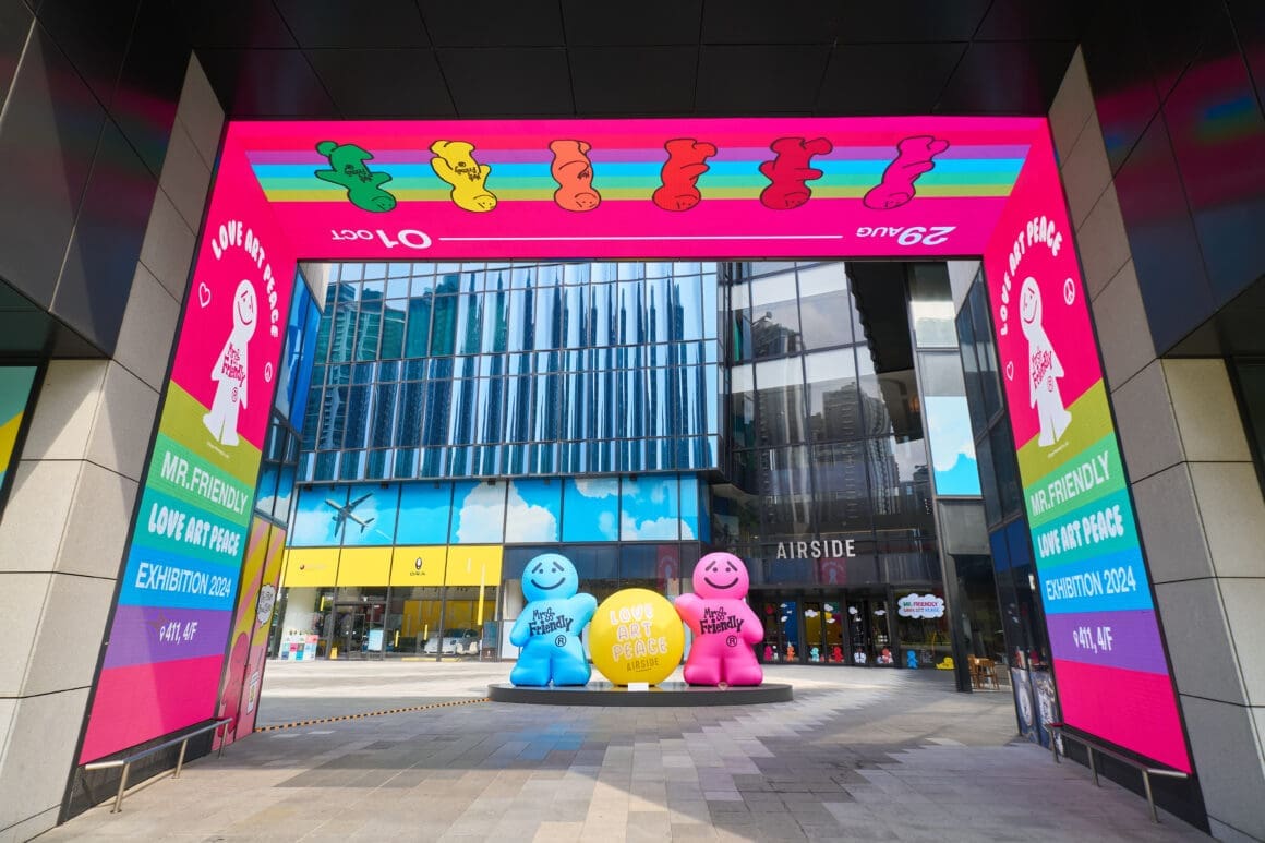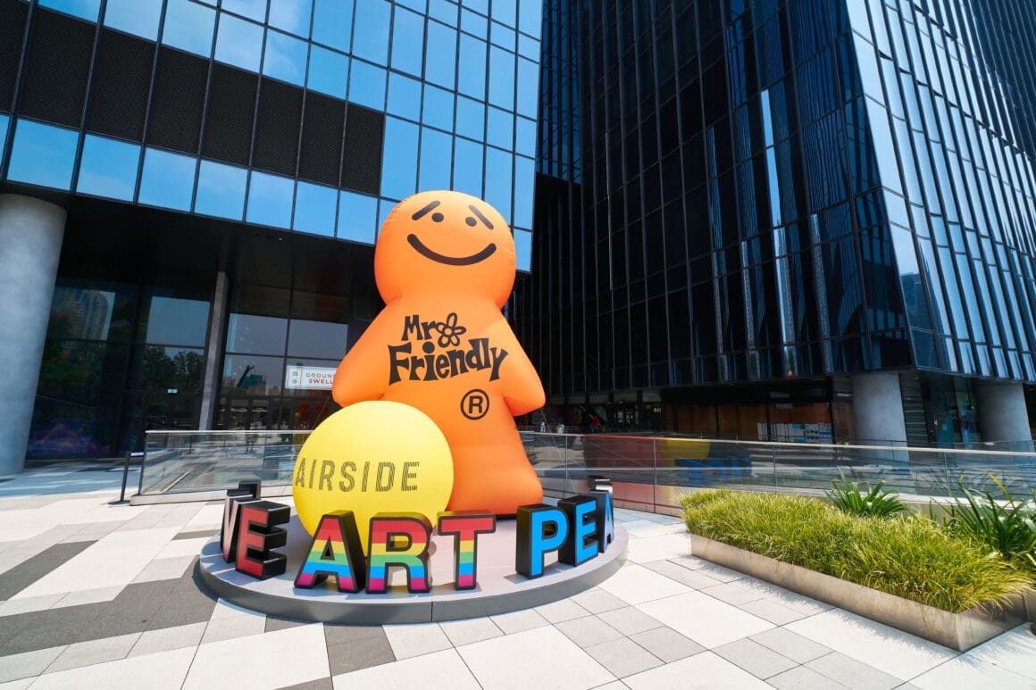 南豐集團旗下的啟德旗艦項目 AIRSIDE,自開幕以來一直是香港文化創意的重要樞紐。今年適逢 AIRSIDE 開業一周年,中秋佳節雙重慶典期間,AIRSIDE 邀請到全球知名的日本創作角色 MR.FRIENDLY,帶來「LOVE ART PEACE」巡迴展覽,首次亮相香港,並展出 55 件珍貴的 MR.FRIENDLY 藝術作品。展覽期間,商場內設有兩個 3.5 米及 5 米高的巨型充氣 MR.FRIENDLY 裝置,配合精緻的餐飲及限量版產品,讓市民在中秋佳節感受濃厚的藝術氛圍。
