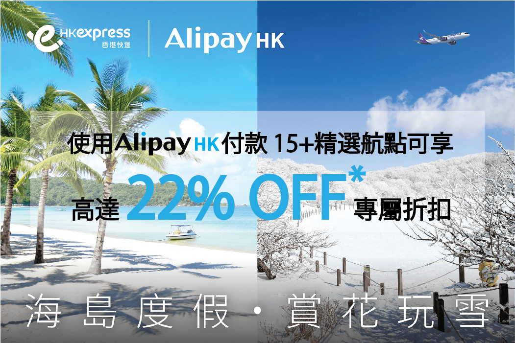 此次推廣覆蓋內地、東南亞及日韓台多個受歡迎航點,適合追求避寒、購物及渡假需求的旅客。請把握限時四天優惠,提早搶購心儀機票。詳情請即開啟 AlipayHK 應用程式查詢。