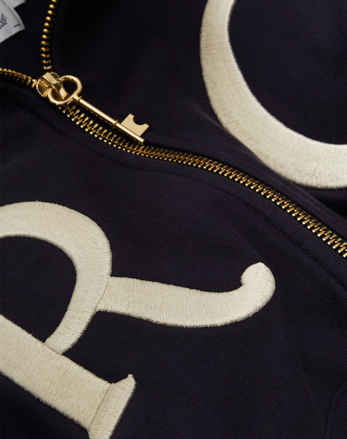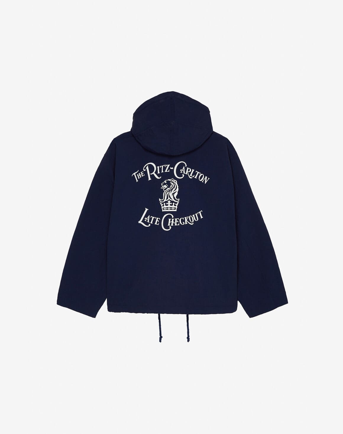 今次合作打造的第二季膠囊系列在精緻優雅和俏皮玩味之間取得完美平衡。服裝主打高端休閒風,適合居家放鬆及城市漫遊。特色單品包括:背部飾有大膽天鵝絨刺繡圖案的飛行外套,致敬環球旅行精神;經典圓領衛衣與運動褲採用重磅棉質,搭配復古刺繡標誌;藏青鏈式刺繡獅子皇冠的寬鬆高領針織衫,向麗思卡爾頓的傳承致敬,同時兼具舒適質感。此外,100% 純棉條紋睡衣(白藍配色)、絲滑緞面睡袍(藏青撞色細節且正反兩面繡有標誌)、連帽衫、經典 T 恤及實用派克大衣,均印有兩大品牌的復古字體標誌,彰顯歷久彌新的美學風格。