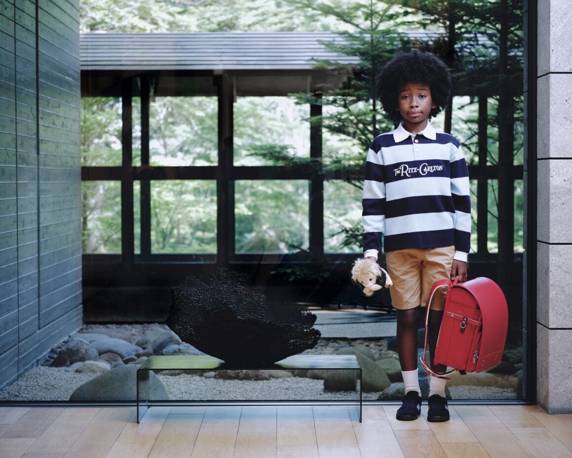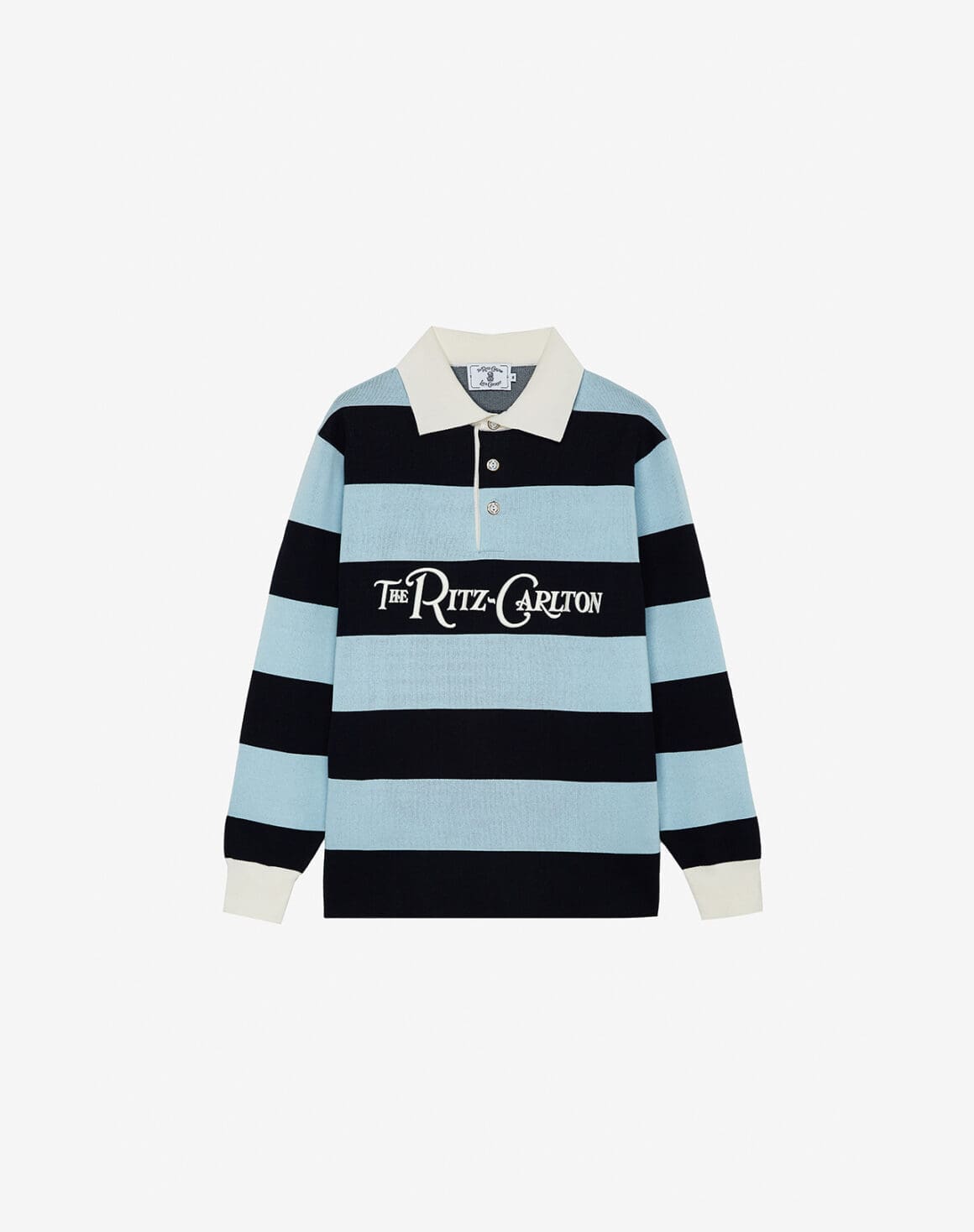 配飾系列融入巧思與實用性,包含印有地球圖案的棒球帽,提供藏青和白色兩款選擇,兼具時尚與機能。家居用品則有羊毛披毯及藍白拼色雨傘,配搭金色金屬細節與雕刻竹柄,將品牌的獨特風格及麗思卡爾頓的優雅融合日常生活。童裝系列延續成人經典款式,以白色地球圖案 T 恤、藏青與淺藍拼色橄欖球 Polo 衫及地球圖案棒球帽為主,致力將優雅閒適的生活美學傳遞給新一代小旅人。每件童裝均重視品質與細節,確保風格與舒適兼得。
