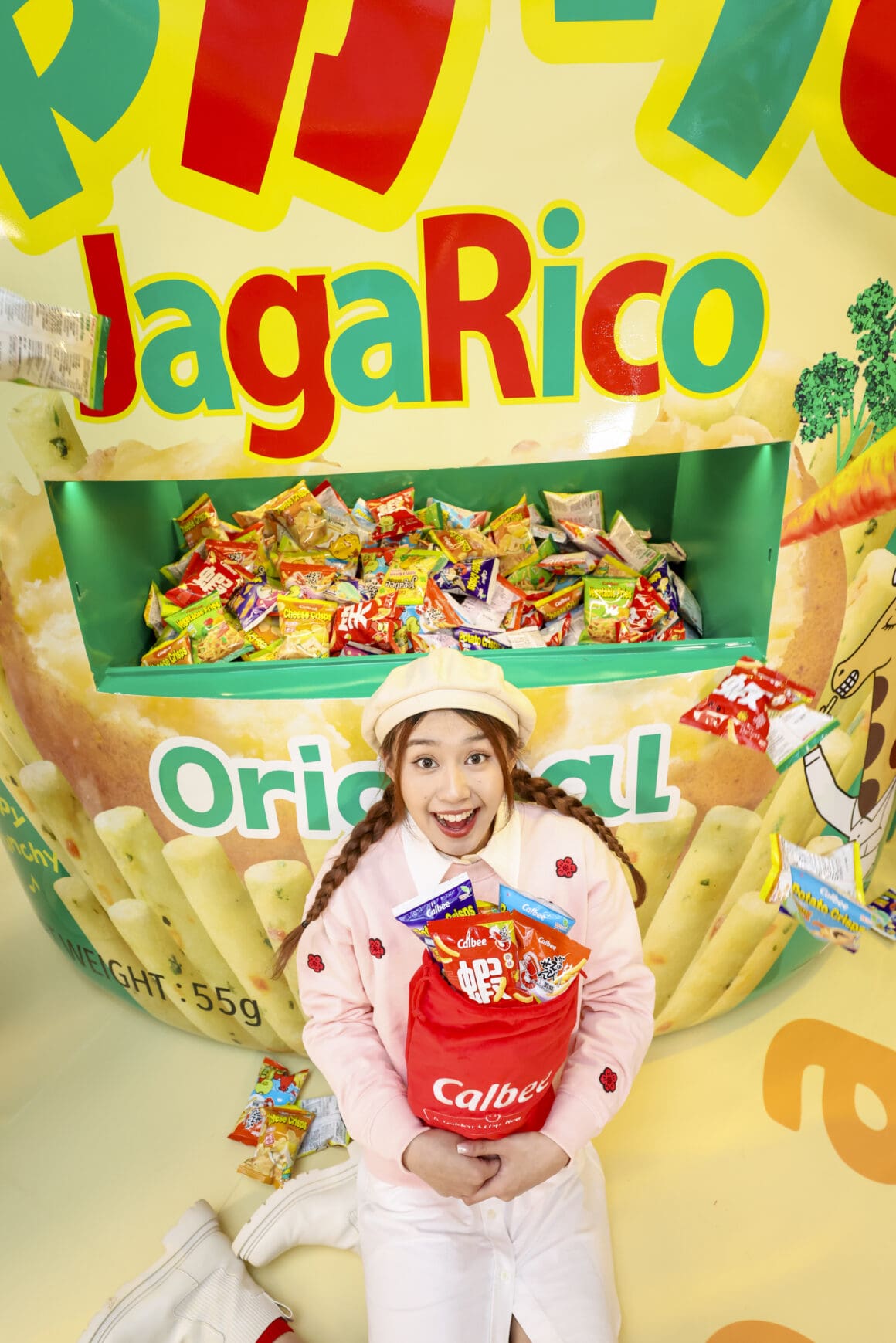 最後一站來到 Calbee 「金『薯』滿屋」快閃店, 4.5 米高的超巨型 Jagabee 薯條屋就在眼前,大家可在屋身兩側發掘 Jagabee Potta 的趣味小知識,測試「薯粉」指數!薯條屋於周末及公衆假期更會變身成期間限定快閃店,獨家發售首度登陸香港的 Calbee 限定商品!逛完快閃店更在店外兩顆馬鈴薯豆袋椅上小歇,並與 1.5 米高、手捧吉祥柑的 Potta 合影,留住充滿歡笑的愉快回憶!