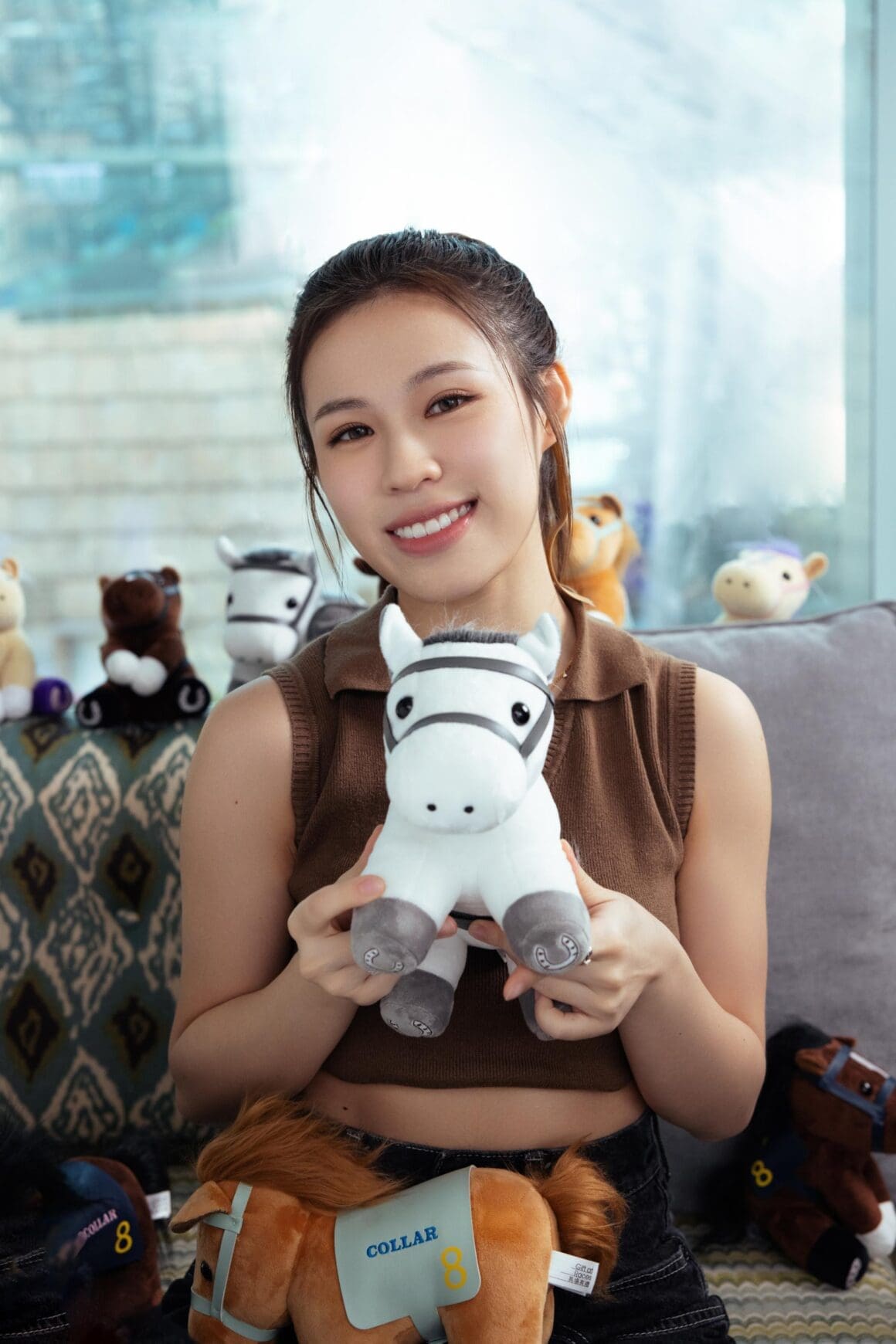 日前 COLLAR 為香港賽馬會拍攝宣傳短片,眾隊員一見可愛馬仔毛公仔即蜂擁而上,童心未泯齊齊與公仔傾心事,平日大行型格路線的邱彥筒( Marf )亦瞬間少女心爆發,情不自禁緊抱自拍一番,而另一隊員蘇雅琳(Ivy)更對馬仔一見鍾情,鏡頭前後不斷獻吻,引起全場爆笑!各人更即場分享「獨門」行運貼士,除了 1 月 1 日入馬場觀賞 COLLAR 表演、全日笑到如馬口般大及入場束馬尾等,古靈精怪的許軼( Day )則揚言雖然老土不過以紅色裝扮「紅噹噹」般入場最有用,主意大爆發,場面搞笑!芯駖更提提大家入場前聽 COLLAR 快歌《 Gotta Go! 》,自然可以財源滾滾來, Go Go Go!