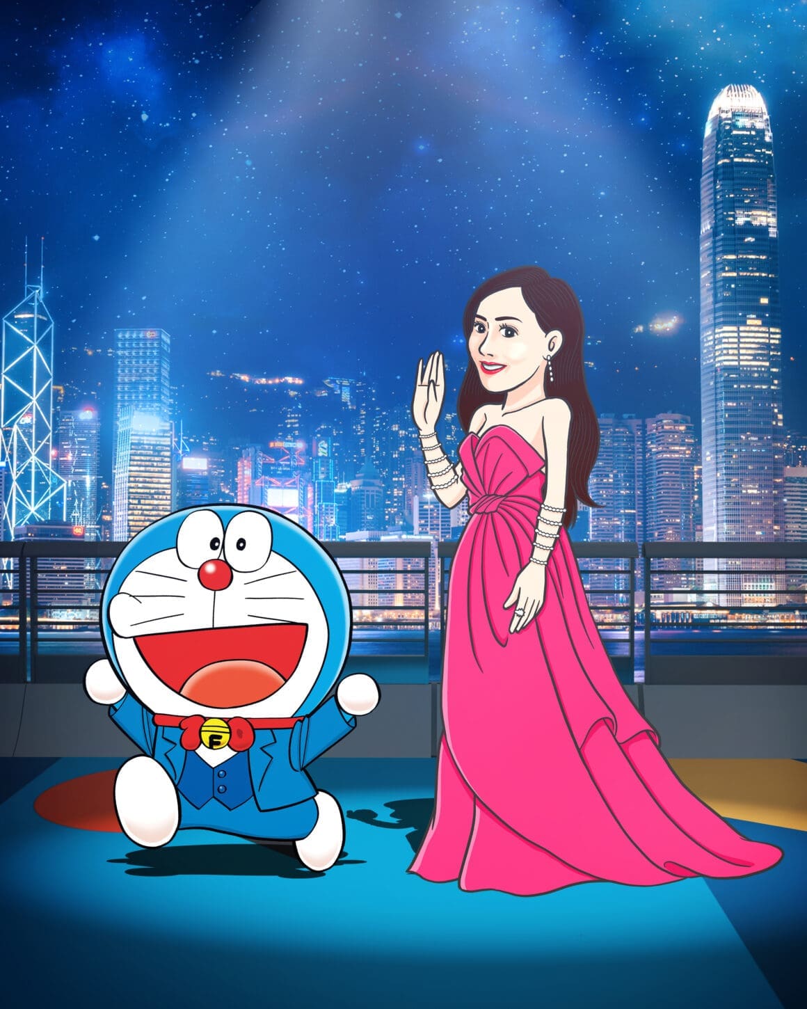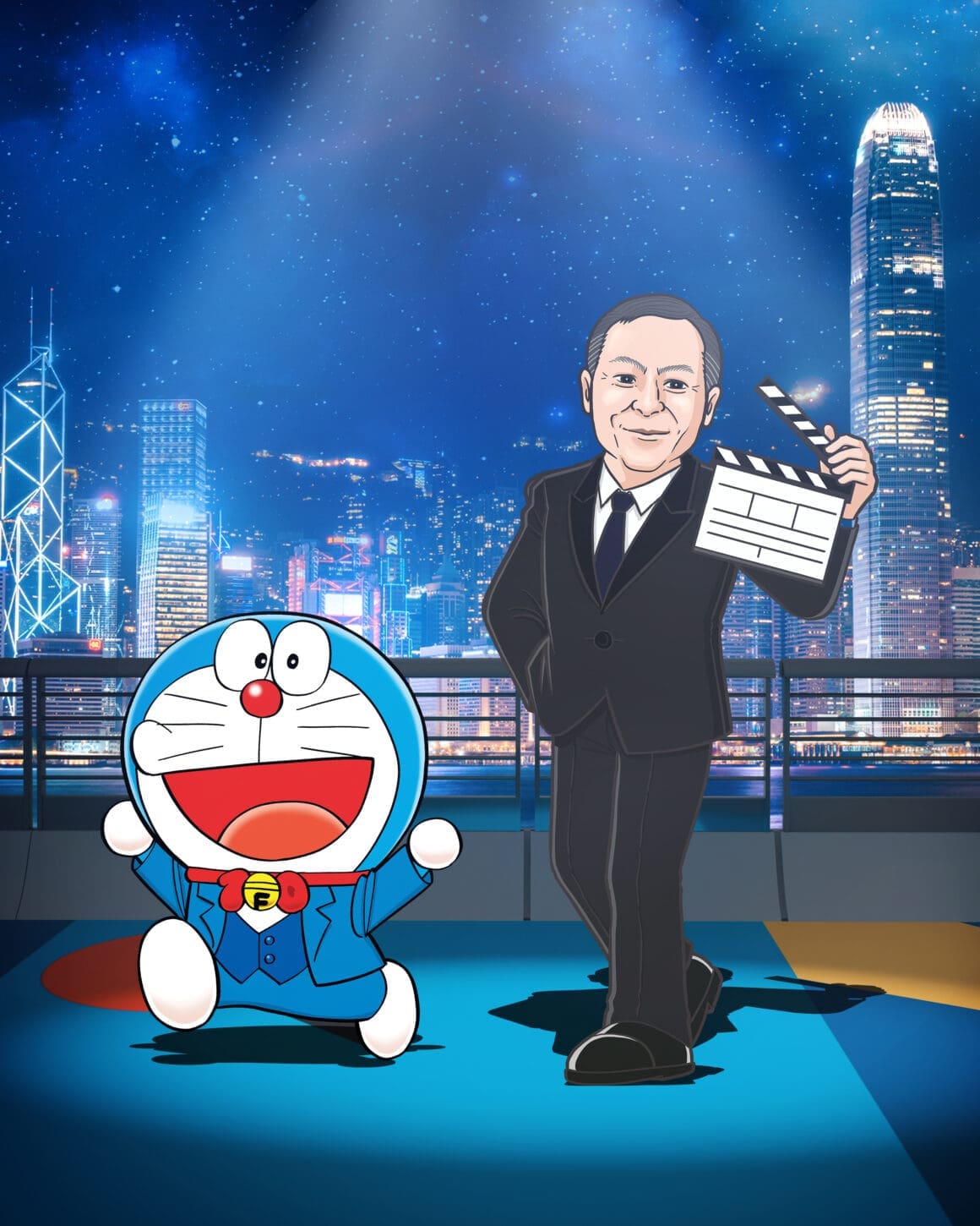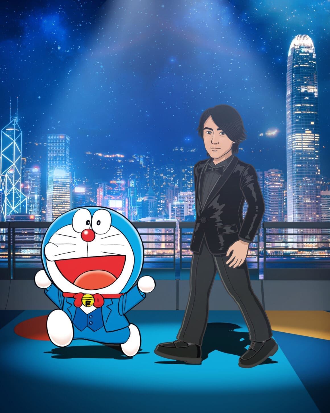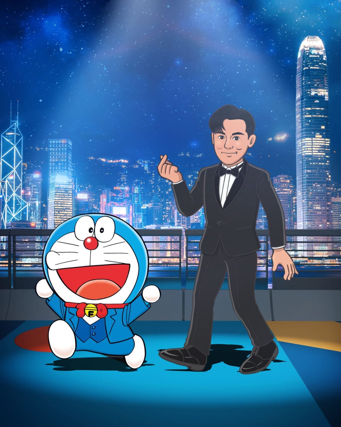 3 位香港電影工作者由主辦單位邀請參與,包括曾為「多啦 A 夢」及不少電影角色配音的已故資深配音員林保全、資深女演員羅蘭、電影公司創辦人兼殿堂級電影導演和監製杜琪峯、現屆香港電影工作者總會會長兼電影公司創辦人及及演員古天樂、演員及唱作人周杰倫、國際影星陳法拉、國際影星及製作人吳彥祖、男演員及歌手鄭伊健、男演員及歌手林峯、資深男演員林雪、女演員周秀娜、新生代演員劉俊謙及袁澧林(排名不分先後),將會以漫畫化的禮服造型亮相,陪伴這 13 位漫畫人物共同踏上長約 100 米、以多啦 A 夢主題顏色為創作概念的「藍」地毯。