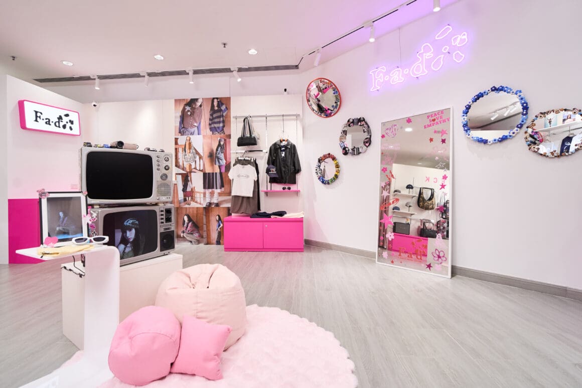 F.a.d 香港首店位於香港黃竹坑香葉道 11 號 THE SOUTHSIDE L1 層 108 號鋪,營業時間為每日 11:30am 至 9pm。店內設計融合 Y2K 色彩美學與千禧年復古元素,搭配撞色傢俱、黑膠唱片及錄音帶裝飾,營造濃厚懷舊氛圍。顧客可充分利用巨型全身鏡、連接 vintage 電視的 DV 攝錄機,以及牆上趣味凸面與平面圓鏡,營造超高拍攝質感的 Fit Check 打卡體驗,展現個人獨特潮流風格,絕對是不可錯過的時尚打卡新地標。