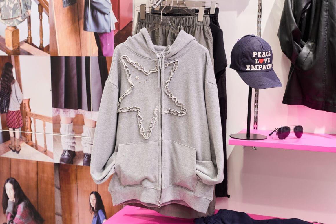 F.a.d 擁有極具辨識度的現代主義風格,結合帶有叛逆與柔美的元素,深受 BLACKPINK Jisoo、LE SSERAFIM 采源、Red Velvet Seulgi、SEVENTEEN Joshua、權恩妃及《比天堂還美麗》演員崔喜珍等韓星喜愛。品牌以解構與重塑多元審美,將緞帶、蕾絲與貓咪圖案拼貼融入式樣,展現剛柔並濟的張力及獨特個性。時尚達人可挑選多款明星同款服飾,包括港幣 $799 的 Lace Crop Hoodie Zip-Up、Sweat Shirts (Two Ribbon) 及港幣 $699 的 Stripe Knit,還有皮革手袋及帽款配飾,滿足不同穿搭需求。