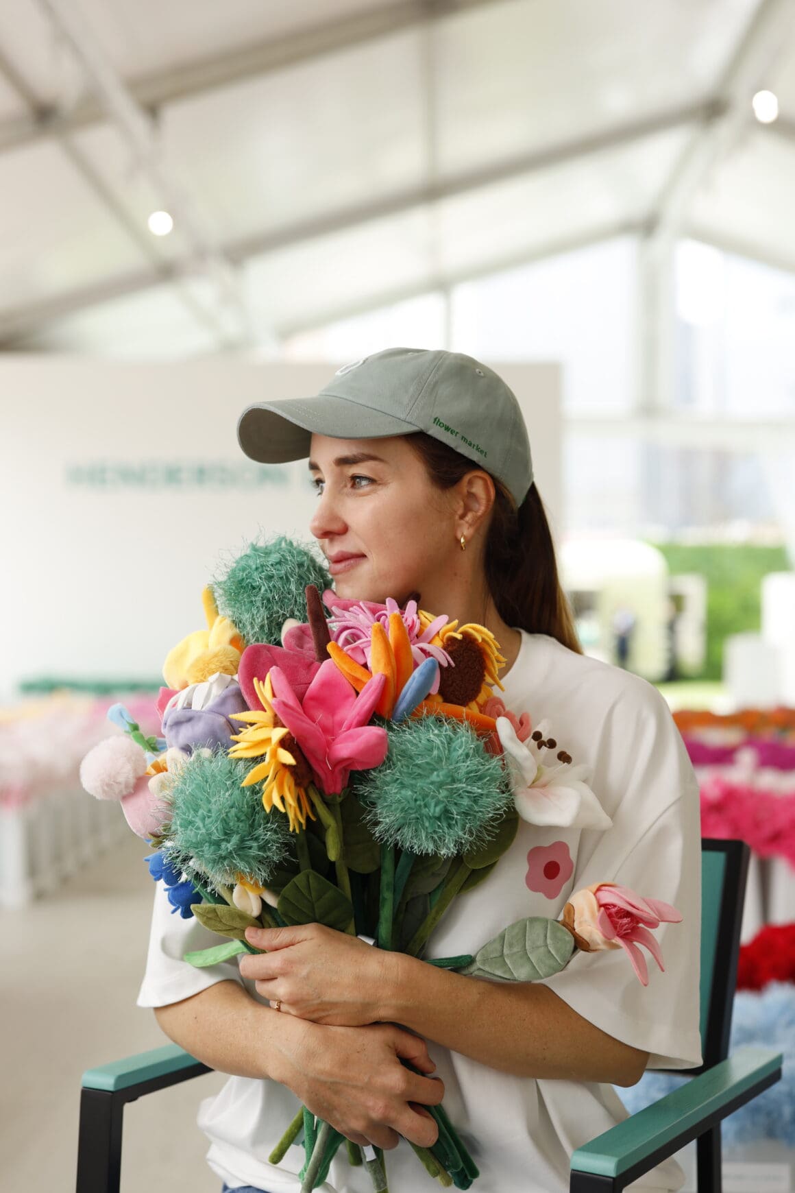 「Henderson Land x Cj Hendry Flower Market」以溫室花園為主題,整個參觀體驗分為兩部分。訪客首先穿越綠色迷宮,沿途設有大型花卉雕塑從綠意中冒出,營造沉浸式體驗。之後進入溫室主展區,置身逾 26 款色彩繽紛的毛絨花卉之中,種類涵蓋玫瑰、向日葵、百合等經典品種,以及多款特色驚喜設計。今次香港版本特別加入兩款全球獨有的香港限定花卉,為整個展覽增添本地色彩。展場內的毛絨花卉可供購買,每朵港幣 $38,每位訪客亦可免費選取一朵自行組合花束帶走留念。