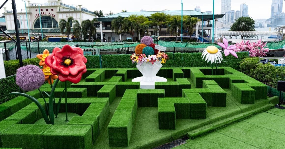 「Henderson Land x Cj Hendry Flower Market」以溫室花園為主題,整個參觀體驗分為兩部分。訪客首先穿越綠色迷宮,沿途設有大型花卉雕塑從綠意中冒出,營造沉浸式體驗。
