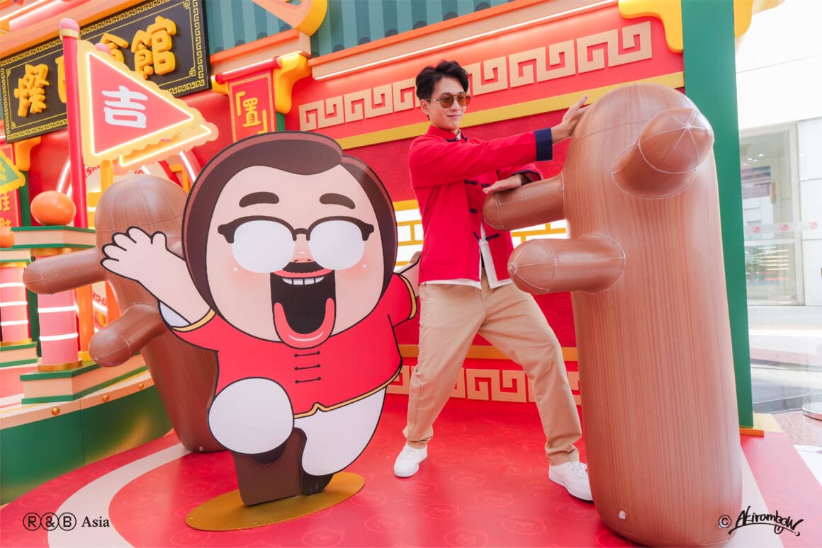 燦子換上功夫造型站上擂台,金幣滾滾象徵財運與健康。醒獅與鼓陣齊響,場面熱鬧。走到木人樁前打卡,為新一年立下健康目標。
