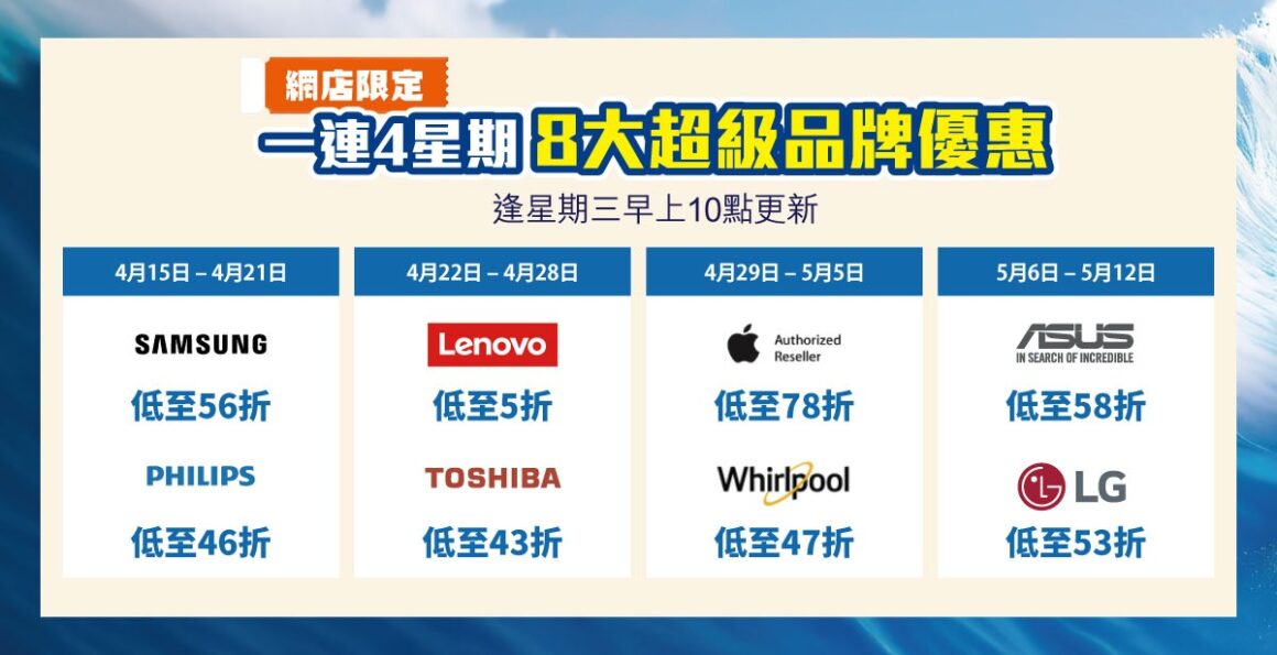 • 第 3 浪:8 大品牌每週輪流限時激賞低至 4.3 折