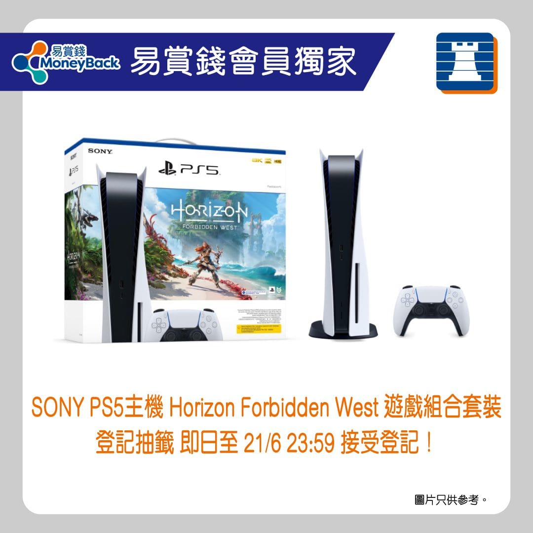 想購買 PS5 機會又來啦!只要是易賞錢會員,由即日起至 6 月 21 日晚上 11 點 59 分,登入豐澤手機應用程式( iOS | Android )即有機會以 $4,380 購買「 Sony PS5 遊戲主機連地平線西域禁地遊戲組合套裝」。抽籤結果將於 6 月 24 日晚上九點透過手機 SMS 通知,而未能中籤的會員將收到電郵通知,預計六月底可購買。