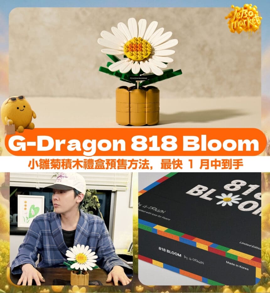玩具“反”斗城現正獨家接受預訂,以港幣 $499 發售權志龍 G-Dragon 與國際積木品牌 Oxford 聯乘推出的「818 Bloom 小雛菊積木限定禮盒」。此限量禮盒集結 K-pop 文化及創意拼砌樂趣,預計於 2026 年 1 月發貨,粉絲可於即日起至 2026 年 1 月 11 日期間預購。產品獨家發售,數量有限,售完即止,成為 2026 年新年最矚目的潮流收藏品。(預購連結)