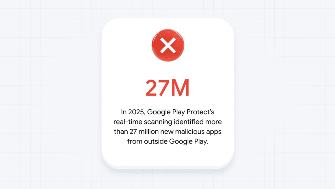 作為 Android 裝置的內置安全防線,Google Play Protect 每日掃描超過 3,500 億個應用程式,涵蓋 Play 商店及第三方來源。2025 年,其實時掃描功能成功識別逾 2,700 萬個全新惡意應用,並透過警告用戶或封鎖應用程式消除風險。Google 建議用戶維持開啟 Play Protect 以獲得最大保障。該防護技術亦於 2024 年底引入香港,推出「強化防詐騙安全防護」功能,擴展至全球 185 個市場,覆蓋超過 28 億 Android 裝置。本地數據顯示功能截至今年初已堵截 200 萬次高風險安裝,涉及逾 6.9 萬個不同高風險應用程式。