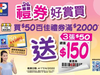 消費券優惠|買 $2,000 百佳優惠券額外送 $150