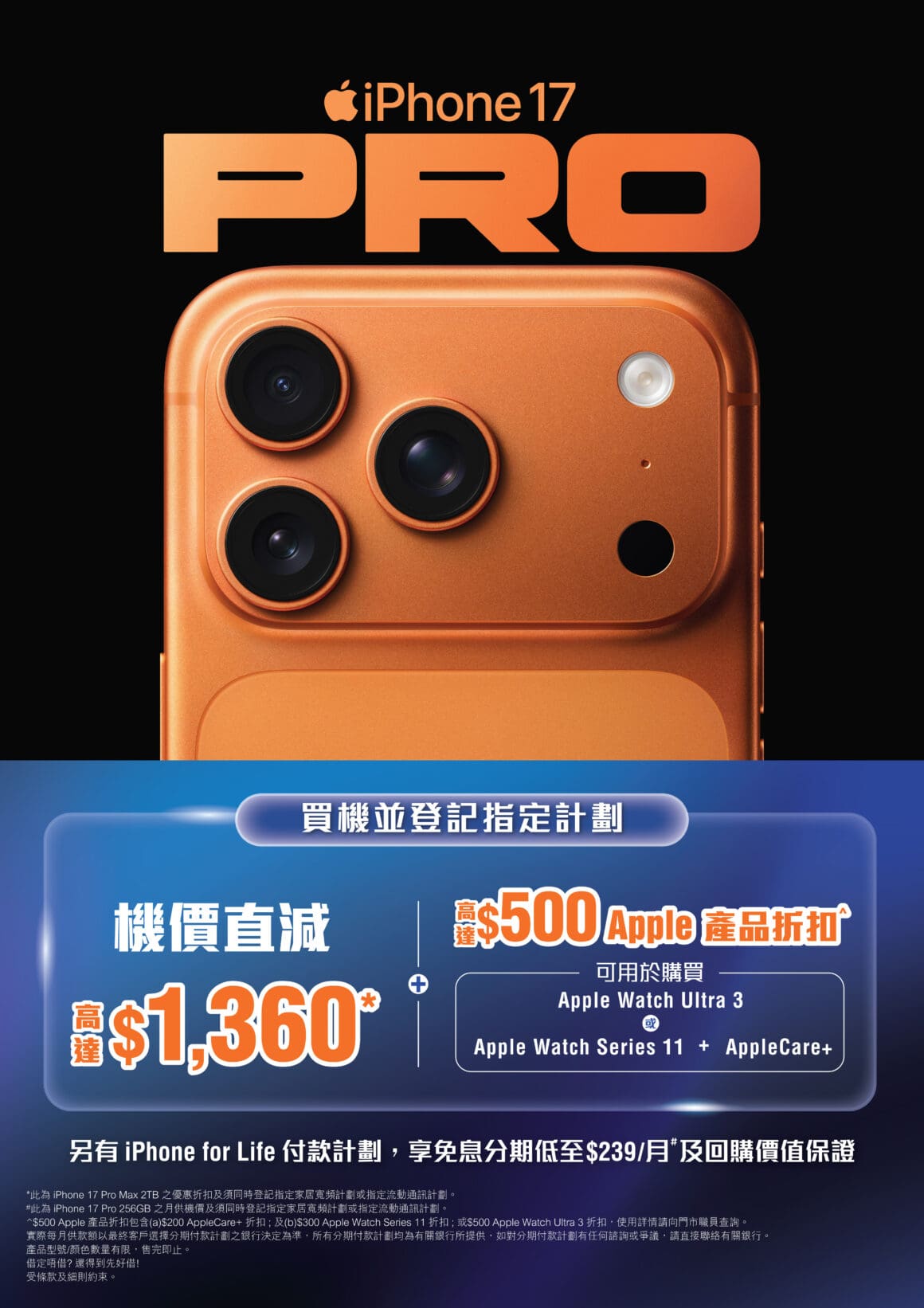 - iPhone 17 系列高達 港幣 $1,360 機價折扣*