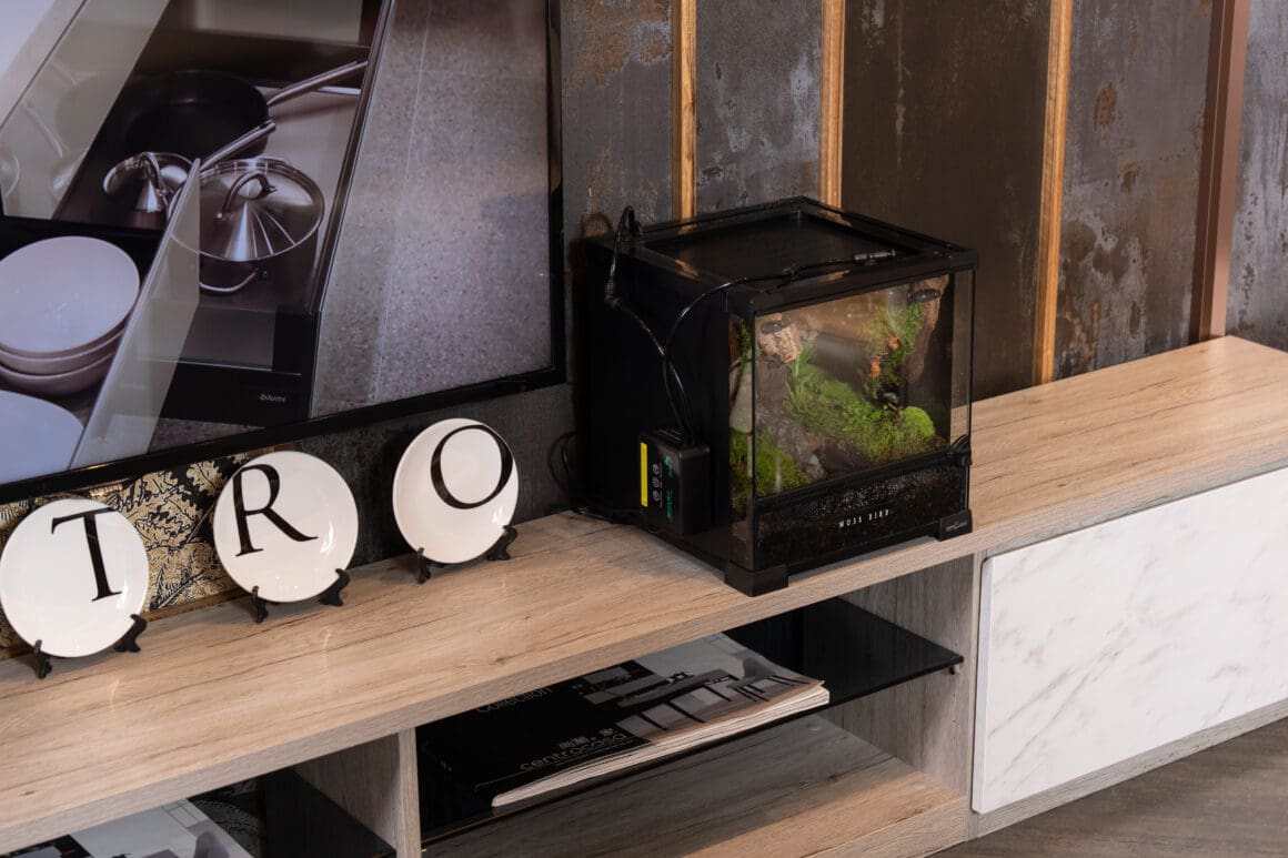 郁動的物品,例如: 流水形苔蘚微景觀。