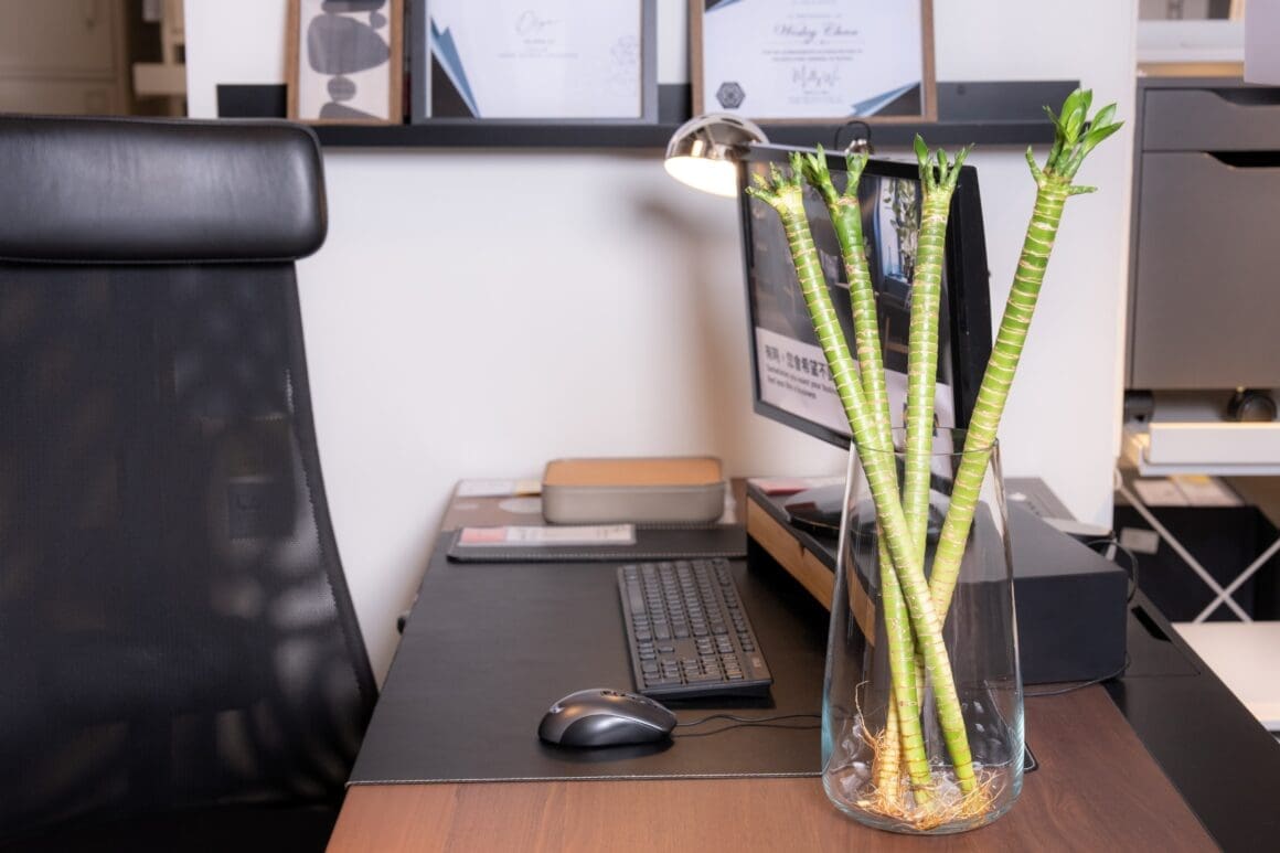 想 助力學業與事業發展,可在東北方放置書枱,並配上 4 支水種直型富貴竹,既穩固氣場,亦象徵節節高升、思路清晰。