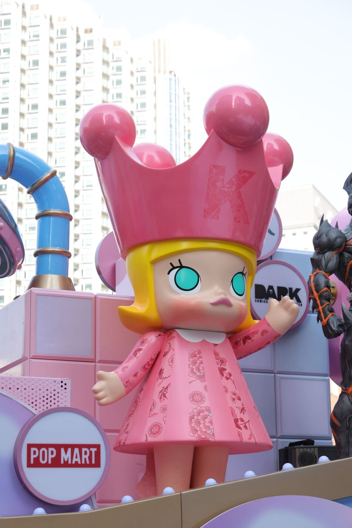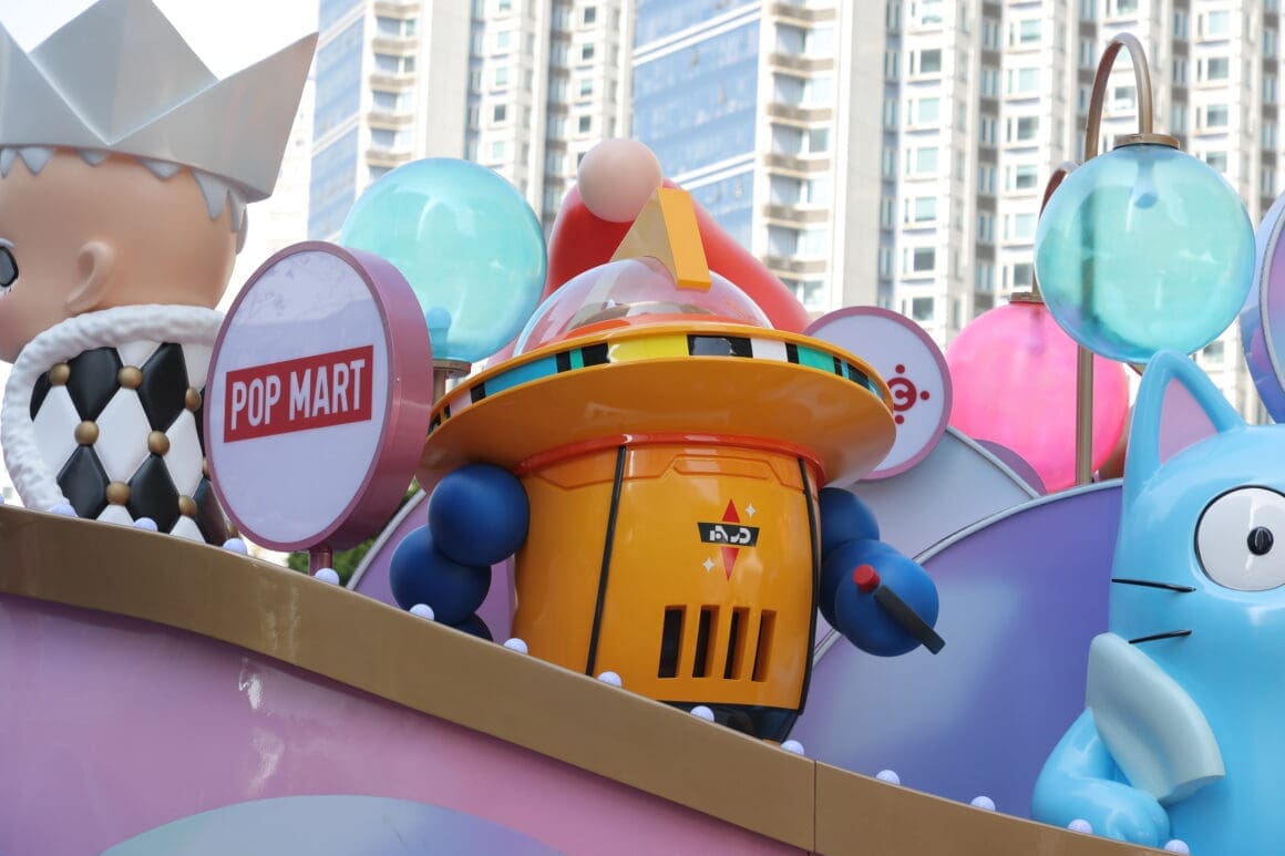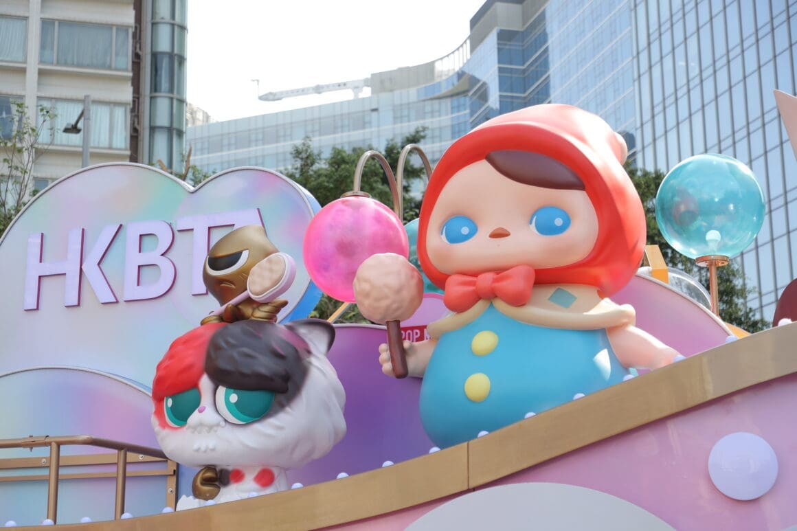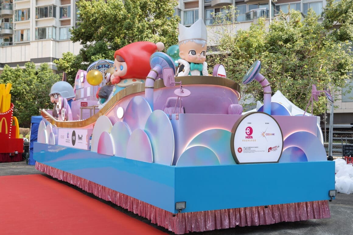 「香港潮流玩具花車」以泡泡浴缸為設計概念,象徵靈感在城市中醞釀與誕生。花車全長 10 米、高 4 米,以粉色為主調,結合燈光、音效及大型立體公仔裝置,化身流動式玩具藝術展館。巡遊陣容匯聚多個本地及國際知名 IP,包括 LABUBU、POP MART 旗下標誌性角色 Molly、SAM SAM、Pucky 創作的 Poko、The Nope Cat、Lab C 原創 Ah-Pollo、港漫角色虎甲人、Z3R0-san,以及設計師創作的螯貓 Omeow 等。大型立體裝置打破傳統花車框架,將潮流玩具文化帶入國際級新春舞台。