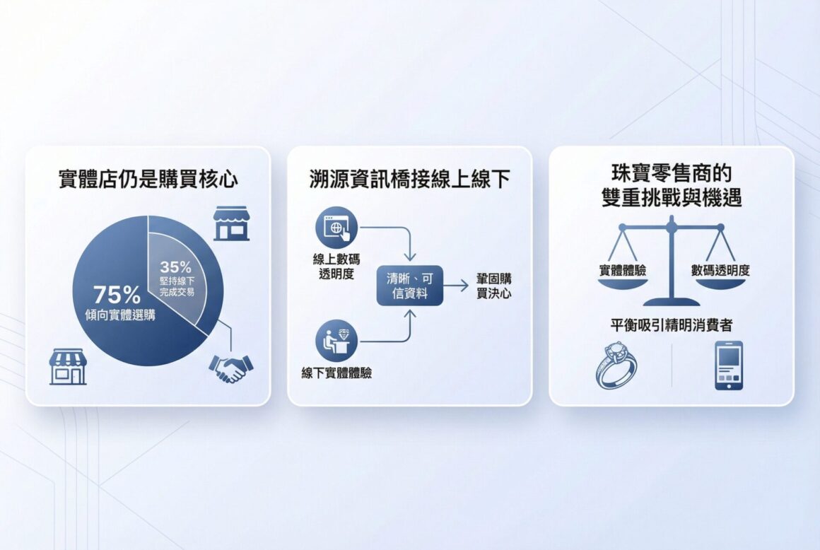 數碼時代改變了消費者獲取資訊的方式,但購買行為本身仍以實體為主。75% 受訪者傾向在實體店選購,當中 35% 堅持整個交易在線下完成。溯源資訊則成為連接線上與線下的重要橋樑,消費者期望品牌提供清晰、可信的資料,以鞏固購買決心。這對珠寶零售商而言,既是挑戰,也是機遇——誰能在實體體驗與數碼透明度之間取得平衡,誰就能更有效地吸引這一群精明的消費者。