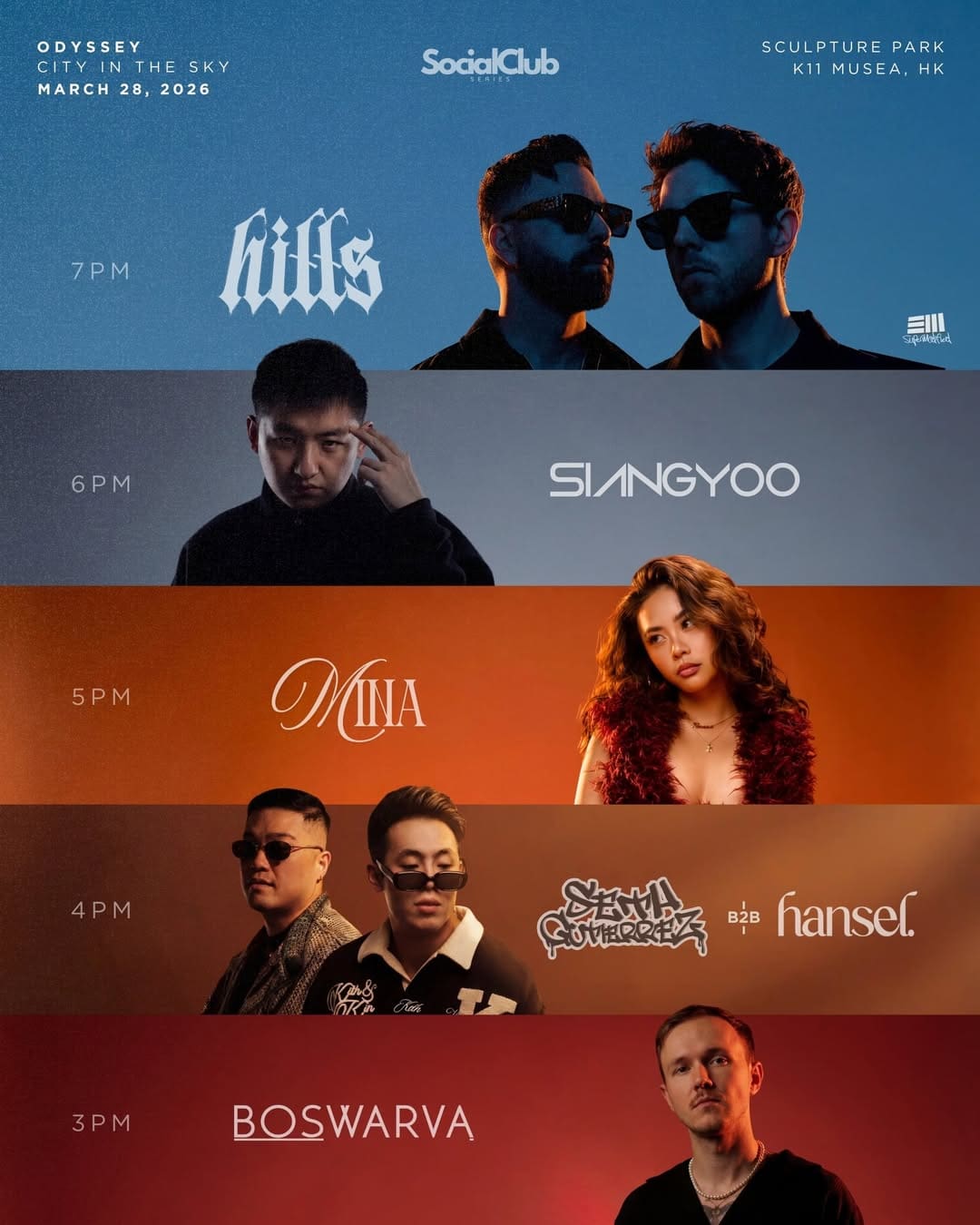 本地派對先鋒 Social Club Series 再度回歸 K11 MUSEA,於 6 樓 Sculpture Park 呈獻升級版戶外音樂節《Odyssey: City in the Sky》,以壯麗維多利亞港天際線為背景,打造結合電子音樂、城市景觀與現場氛圍的沉浸式派對體驗。今年帶來多位國際級 DJ 首次來港演出(立即購票):