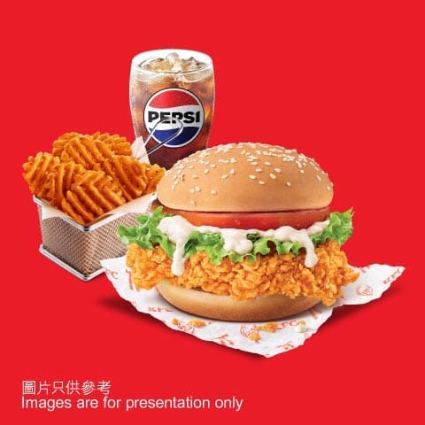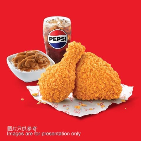 - 家鄉雞餐/香辣脆雞餐/狂惹香燒雞餐 搭配固定小食 辣汁蘑菇香飯(普通),再配中杯汽水,經典滋味雙倍滿足。