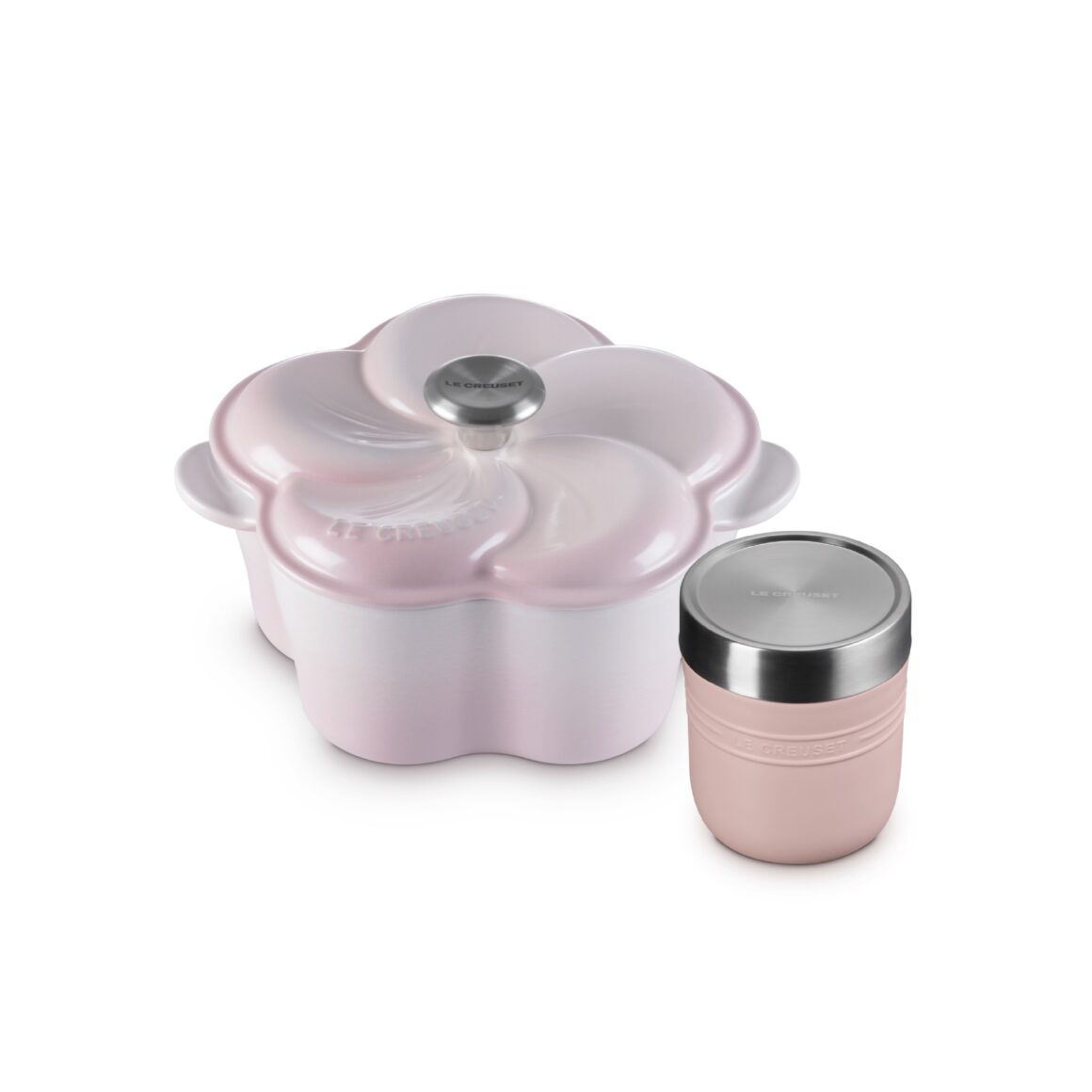 Le Creuset 同時推出母親節限定套裝,內含花形琺瑯鑄鐵鍋 20 厘米及 On The Go 食物保溫瓶 500 毫升(Shell Pink),套裝限定價港幣 $2,688 起(建議零售價港幣 $3,700 至港幣 $4,000)。套裝涵蓋 White、Shell Pink、Bluebell Purple 及 Berry 四款鑄鐵鍋顏色可選。