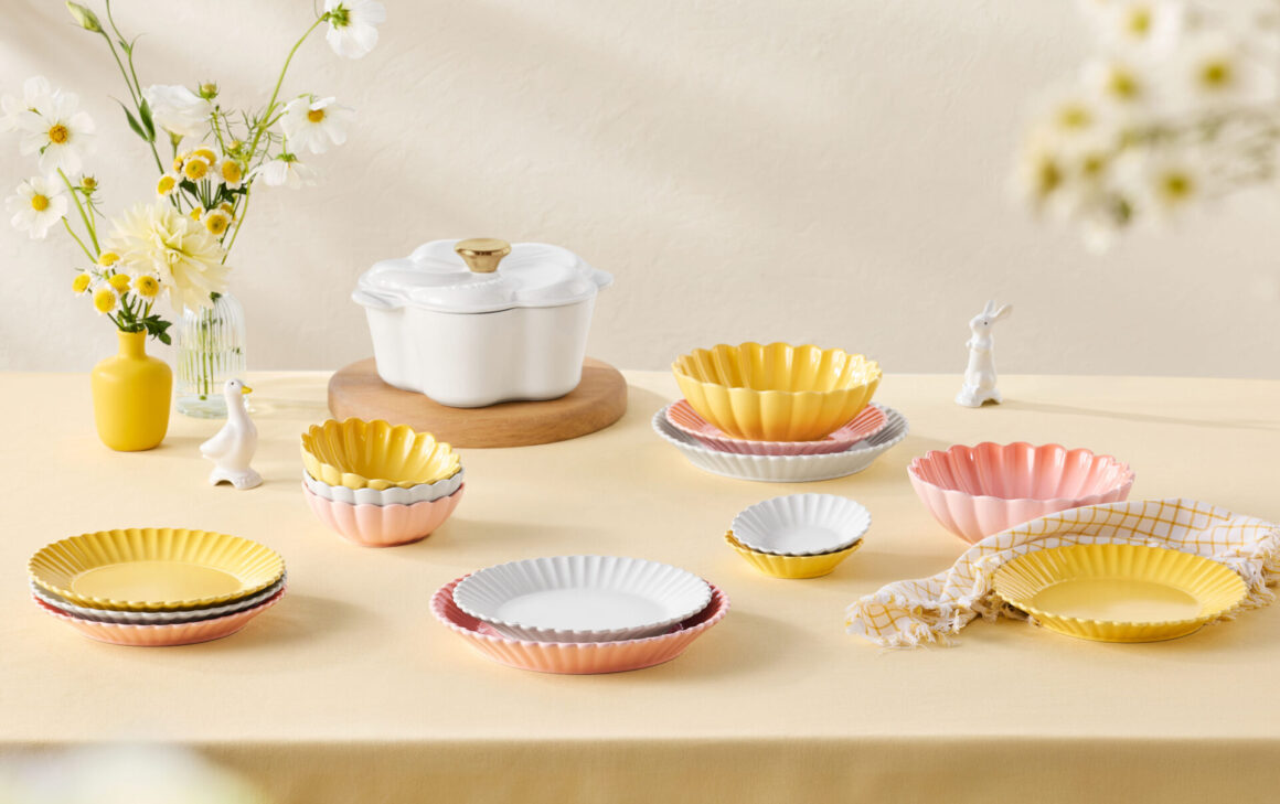法國高級廚具品牌 Le Creuset 推出全新 Flower 系列,以春日盛放花卉為設計靈感,涵蓋花形琺瑯鑄鐵鍋、非洲菊造型陶瓷餐碟及餐碗、銀蓮花花瓣造型陶瓷杯碗及蛋杯,以及派鳥等多款產品。系列現已於全港門市及官方網店發售,花形琺瑯鑄鐵鍋建議零售價由港幣 $3,280 起。