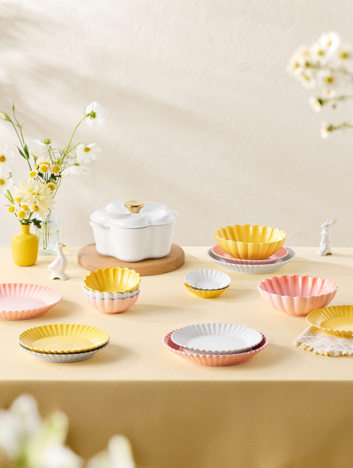 陶瓷系列以精緻的非洲菊花瓣浮雕為設計重點,提供 Cotton、Camomille、Pêche 三款柔和色系,兼具美感與日常實用性。產品包括: