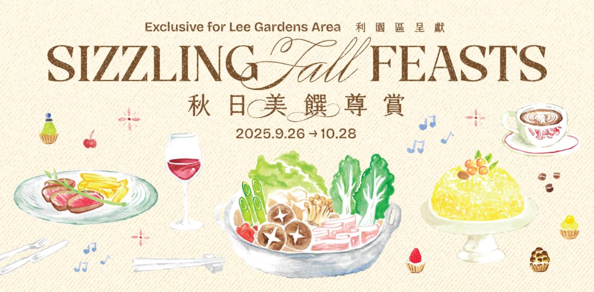 配合「秋日美饌尊賞」,推廣期內於指定餐廳單日達標消費,並於當天透過 Lee Gardens 應用程式上載合資格單據,即可獲發電子禮券組合:滿港幣 $500 送港幣 $50 利園區指定商戶電子券及港幣 $50 Pret a Manger 電子券;滿港幣 $1,500 再加送 港幣 $100 利園區電子券及港幣 $100 山手作電子券;滿港幣 $3,500 直取港幣 $250 利園區電子券連港幣 $200 山手作電子券。禮遇以電子形式存入「我的錢包」,數量有限,先到先得,換完即止。