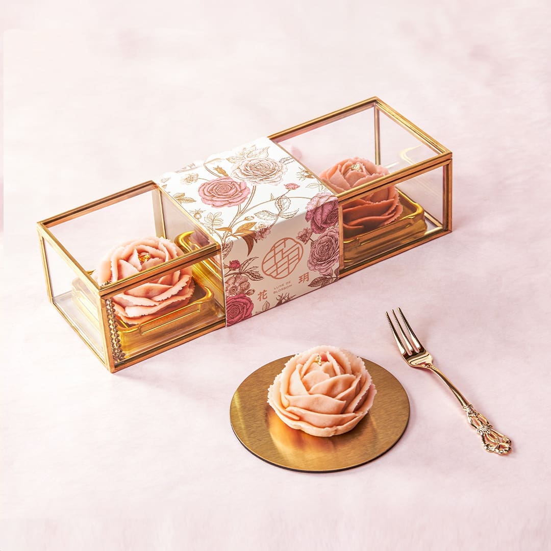 手工玫瑰花月餅連精美玻璃禮盒,粉色花卉之美