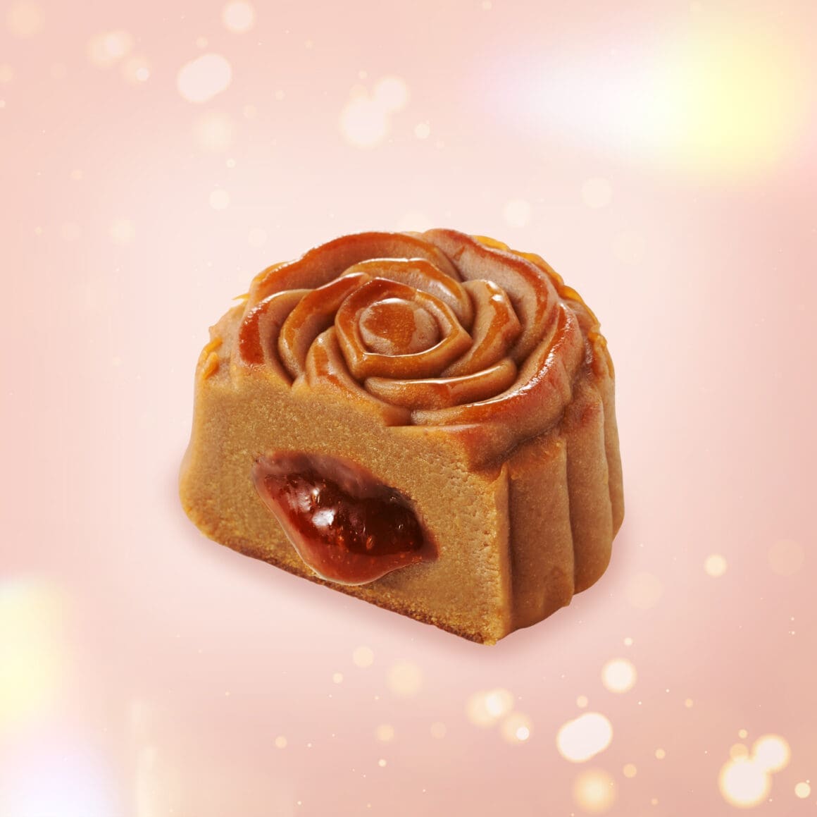 • 手工玫瑰花月餅連精美玻璃禮盒,粉色花卉之美