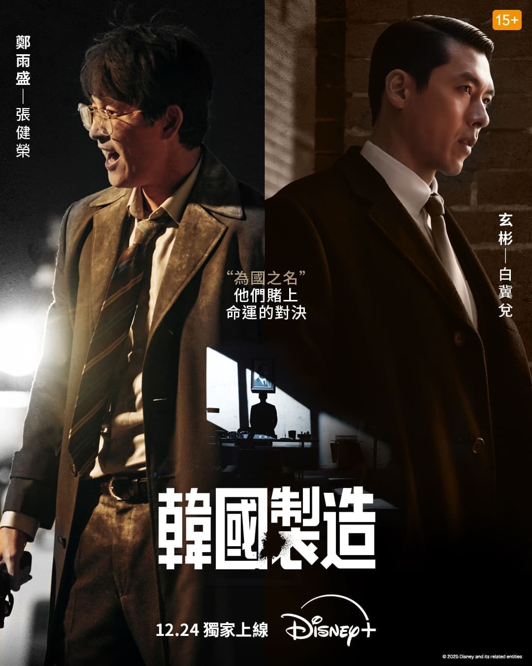韓國兩大青龍影帝玄彬與鄭雨盛聯袂主演的韓劇《韓國製造》平安夜於於串流平台 Disney+ 獨家首播,為年度重點韓劇之一。此劇以動盪的 1970 年代韓國為背景,劇中玄彬飾演野心勃勃、手段強硬的中央情報課長,鄭雨盛則化身正義檢察官,兩人在權力鬥爭中激烈對決。劇集擁有電影級製作規格,並包含大量精彩的動作場面。主演早前更親訪香港接受訪問,分享拍攝期間的趣事及創作靈感。首兩集現正於 Disney+ 平台同步上映,每週三更新新集數,第二季亦已展開製作,粉絲不容錯過。