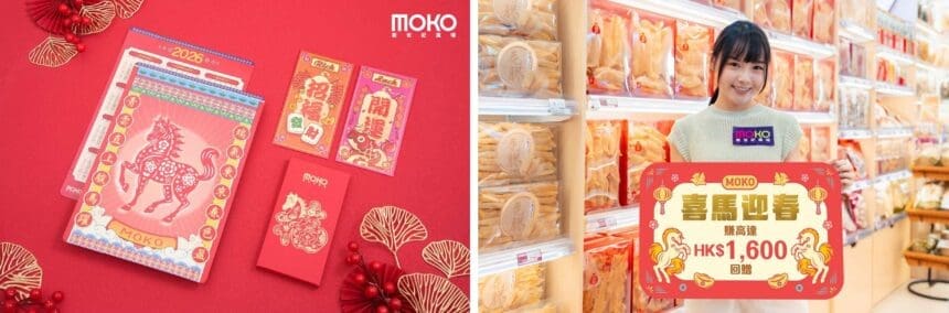由即日起至 2026 年 2 月 28 日,旺角 MOKO 新世紀廣場隆重呈獻【新春開運馬年企劃】,涵蓋多款限定開運福物及精彩節慶活動,包括「財福滿JOY利是封」、「馬到Luck來 2026 年曆卡」及「Horse連連開運禮盒」。同時,MOKO 為 The Point 會員推出四重新春優惠,最高可獲港幣 $1,600 回贈,並首次舉辦「香港手信節」,讓市民與旅客體驗地道港式新年風情。配合新春及情人節限定活動,MOKO 更帶來揮春派對、迎財神及手作體驗,助您迎接滿滿福運與喜慶氛圍,加上人氣品牌進駐及期間限定 Chiikawa Baby 快閃店,旺角節慶熱點非 MOKO 莫屬!
