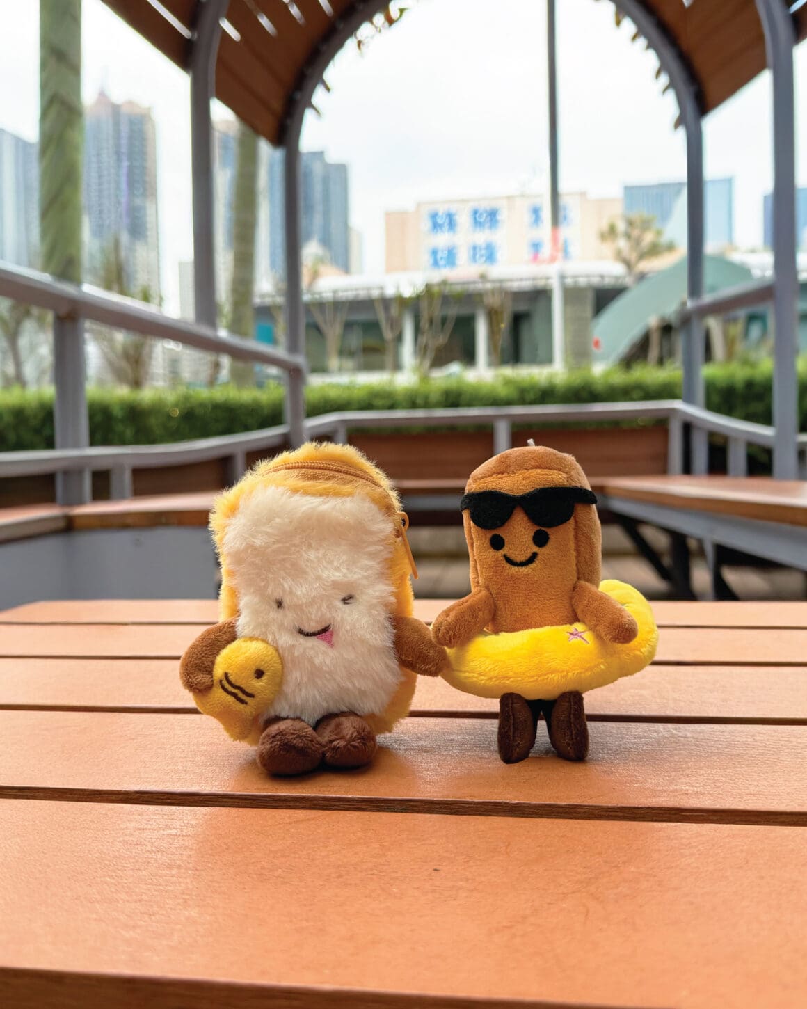 「魚片小姐」毛毛小物袋及「水泡春卷仔」公仔吊飾。