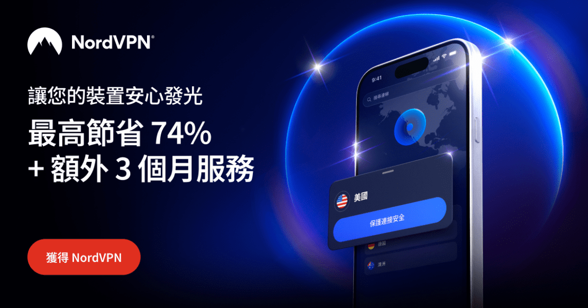 NordVPN:最高可享 77% 折扣 + 2 年計劃加送 3 個月免費