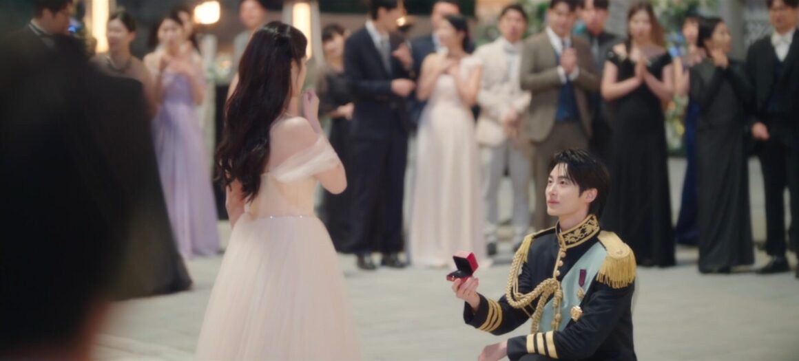 第 6 集以一場雲集政界要人的「內進宴」作為主戰場。大妃尹以朗(公升妍飾)原本將成熙周的受邀視為伊安大君的「分手禮」,打算借助場合體面地完成切割。豈料伊安大君將計就計,兩人在眾目睽睽下合跳圓舞,完美的默契令在場所有人為之側目。舞畢,伊安大君突然下跪,取出亡母的戒指,正式向成熙周求婚。成熙周喜出望外地接受,伊安大君隨即向國王李潤(金殷昊飾)請求允許,國王掃視一眼大妃凌厲的眼神,仍然點頭:「允許。請幸福。」