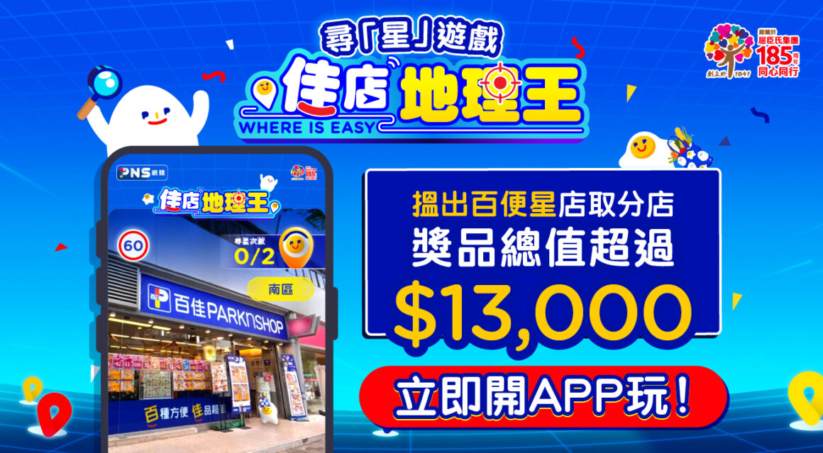 即日起至 2026 年 5 月 7 日,易賞錢會員毋須消費,登入 PNS 網購或 PNS App 即可無限次參與「佳店地理王」遊戲。玩家需根據相片線索猜出「百便星」所在的百佳分店位置,探索「落佳拎」指定門市。推廣期內累積最高分的首 30 名玩家可贏取以下豐富獎品(立即參加):