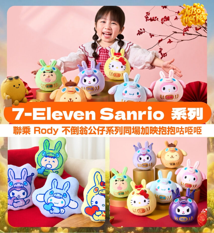 7-Eleven 馬年 Sanrio 與 Rody 不倒翁公仔系列限時優惠,同場加映抱抱咕𠱸𠱸及電腦枱墊 Sanrio 粉絲必換…