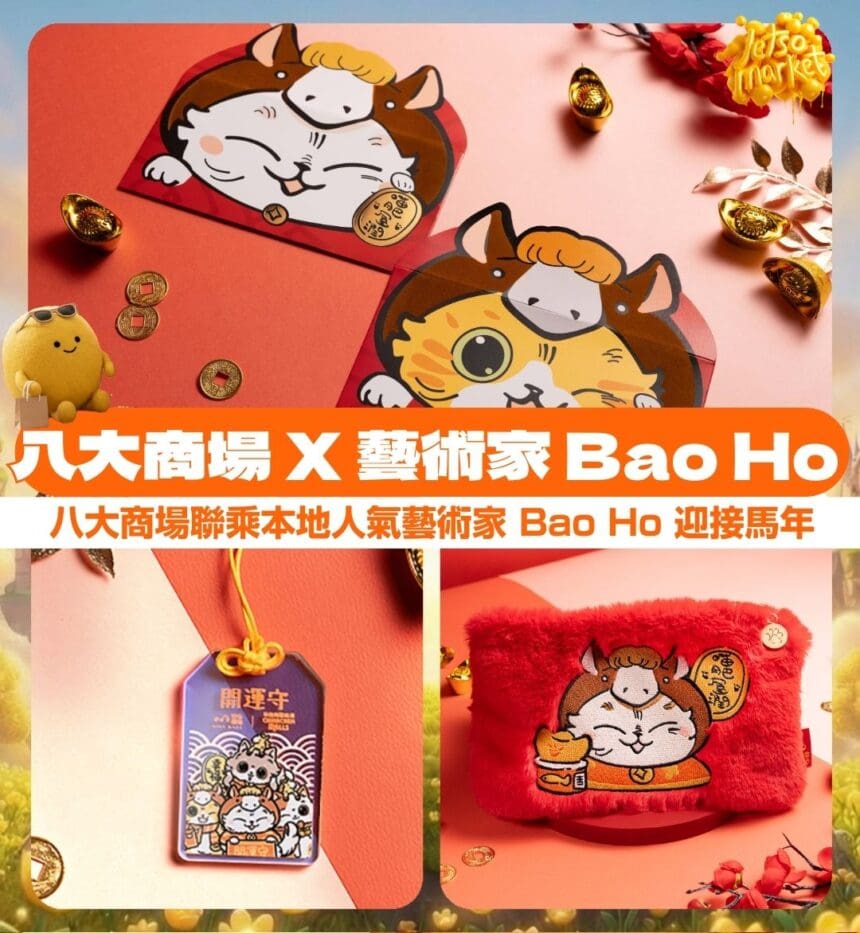 八大商場聯乘本地人氣藝術家 Bao Ho 迎接馬年,帶來「喵來福到開運祭」超可愛貓貓利是封等必換…