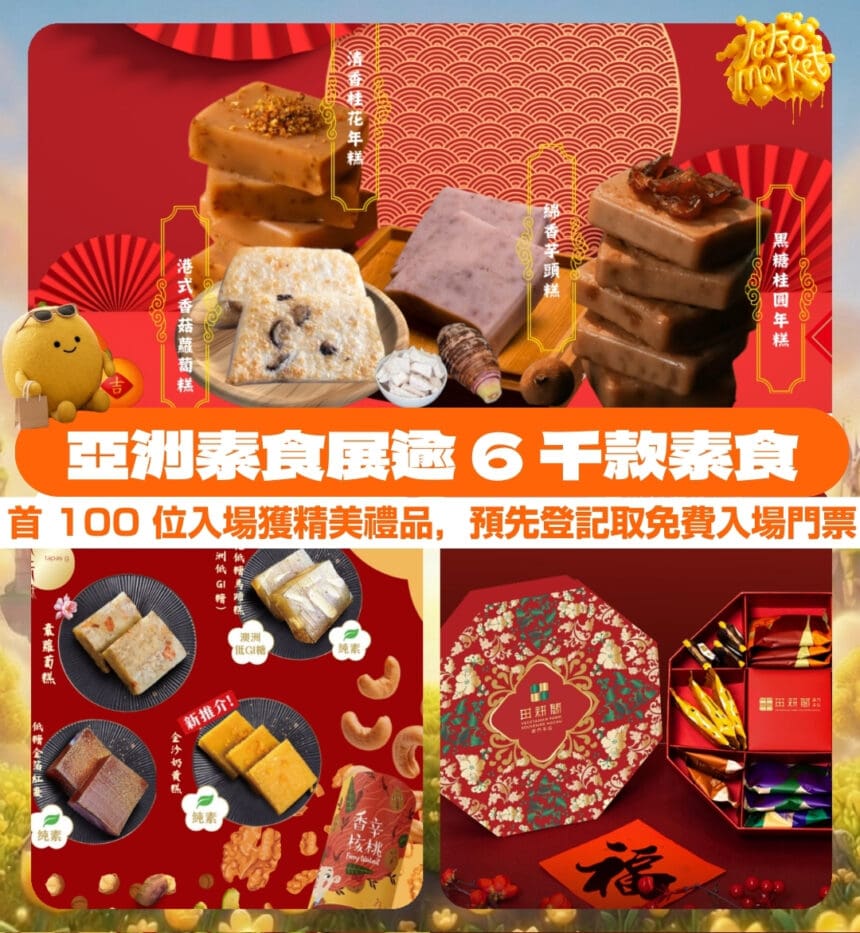 2026 亞洲素食展超過 6,000 款素食產品,首 100 位入場獲精美禮品消費 $300 可獲匹克球活動入場證…( 23/1 至 25/1 )