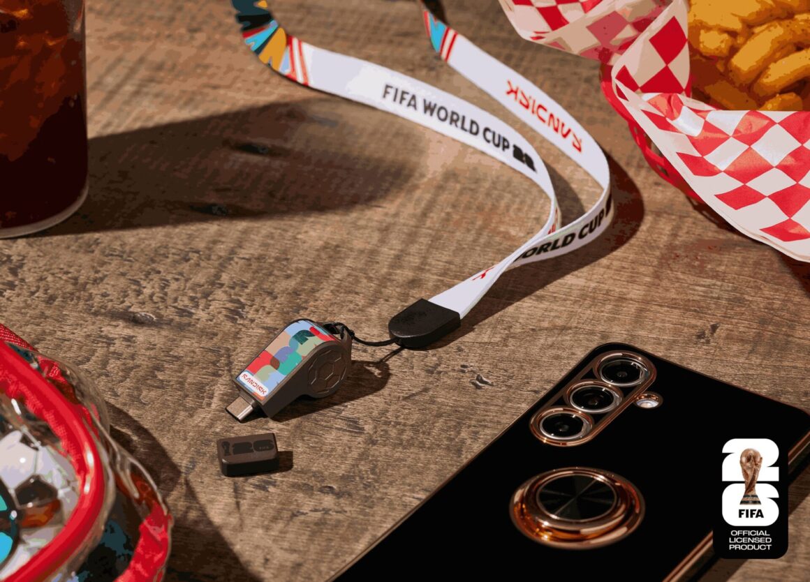 整個系列的視覺焦點,落在 SANDISK USB-C 隨身碟 FIFA World Cup 2026 全球授權版身上。以哨子造型為設計靈感,外觀直接呼應球場文化,對球迷而言兼具實用與收藏價值。隨身碟支援 USB-C 接口,可直接連接手機、平板或電腦,快速傳輸照片與影片,方便在賽事現場或旅途中即時管理內容。