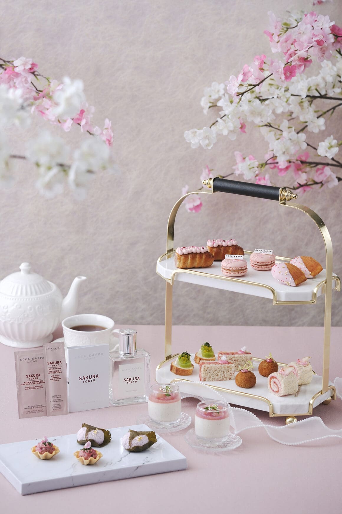 凡惠顧「櫻花春日下午茶」的每位賓客,均可獲贈價值港幣 $250 的 ACCA KAPPA 香水及身體護理限量體驗套裝,內含 2ml 香水體驗裝一份及身體護理試用裝一份(款式隨機,視庫存而定)。另送 ACCA KAPPA 門店專屬邀請卡一張,憑此邀請卡可享門店專屬禮遇,包括兩份 2ml 香水體驗裝或一份身體護理試用套裝、專業免費香氛諮詢服務、全場消費九折優惠,以及單次購物滿港幣 $1,200 可享八折優惠,助您全面體驗優雅生活美學。