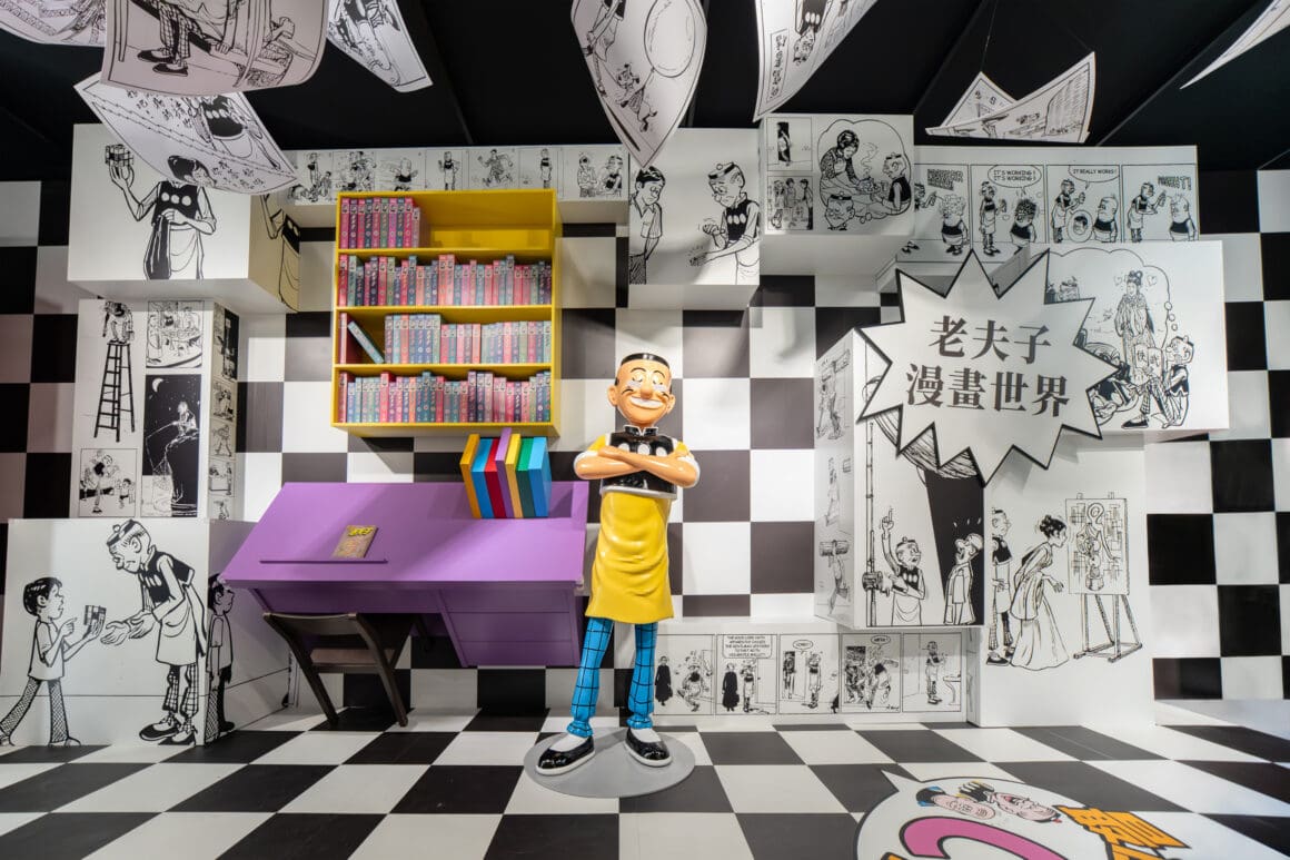 「漫妙濠時光」特展覆蓋新濠影滙多個地點,將經典四格漫畫場景真實呈現。展覽開端「時光手稿珍藏館」展出創刊前手稿及創作工具,讓賓客深入了解老夫子形象的誕生過程。經典場景如「老夫子報紙亭」及「老夫子冰室」重現昔日閱讀漫畫與享用美食的時光。現場設有「漫妙合拍 321」互動拍照裝置,賓客可化身漫畫主角,現場生成專屬四格漫畫照片,成為獨特紀念。