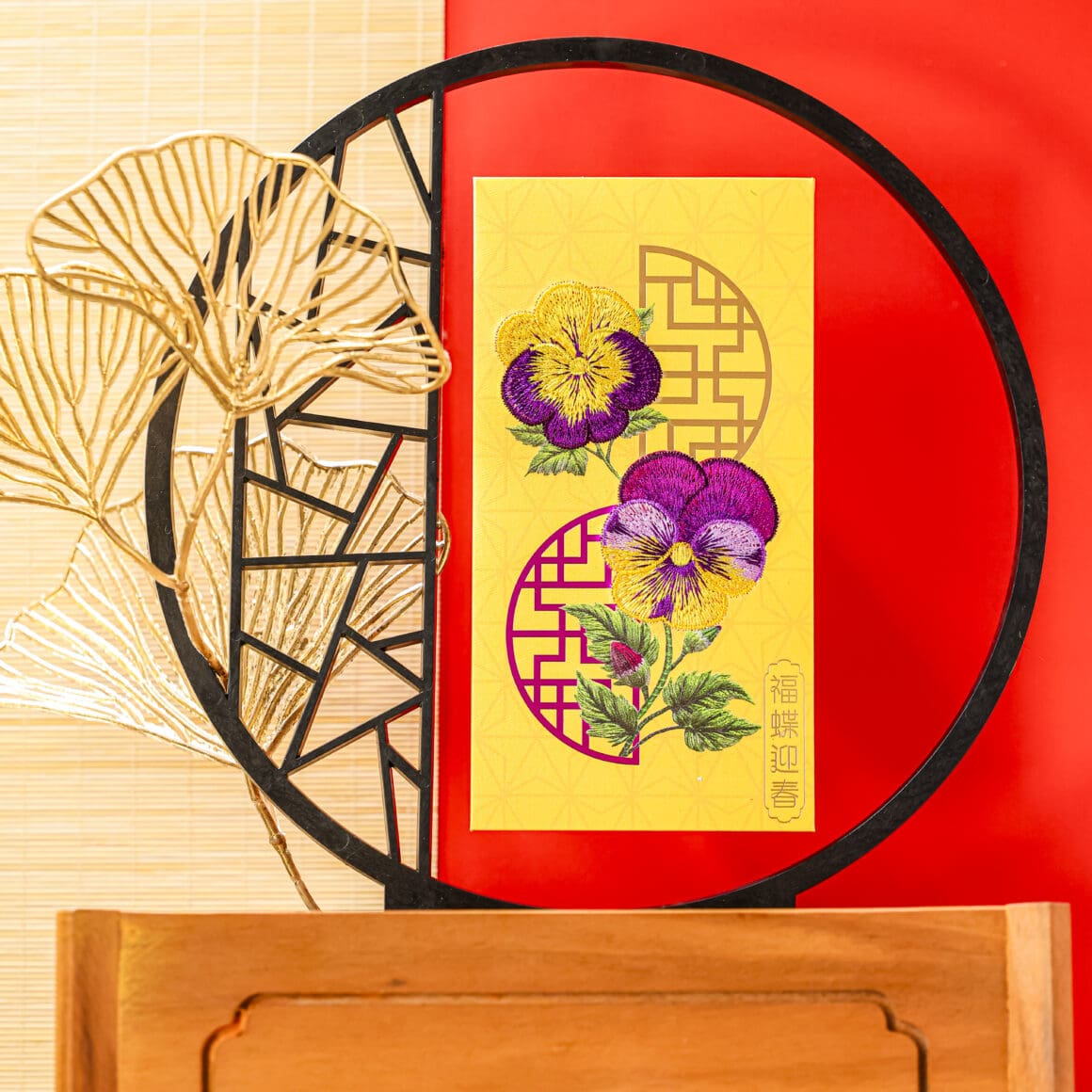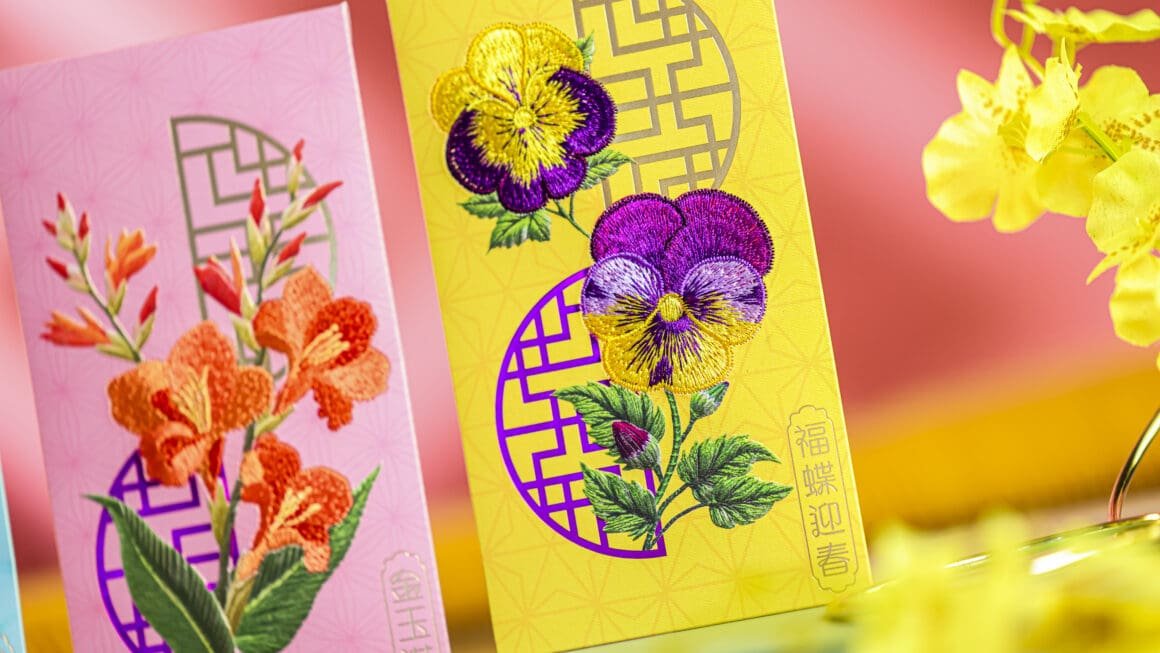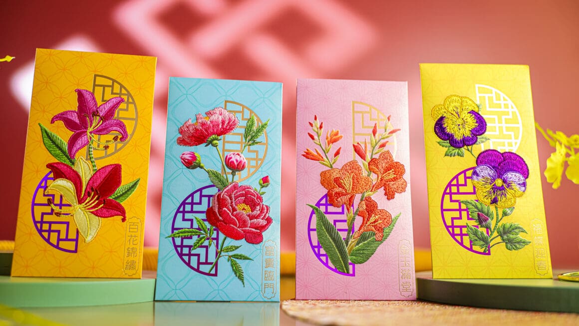 該系列以經典新春花卉為設計靈感,結合傳統刺繡工藝,製作出四款寓意吉祥的利是封。